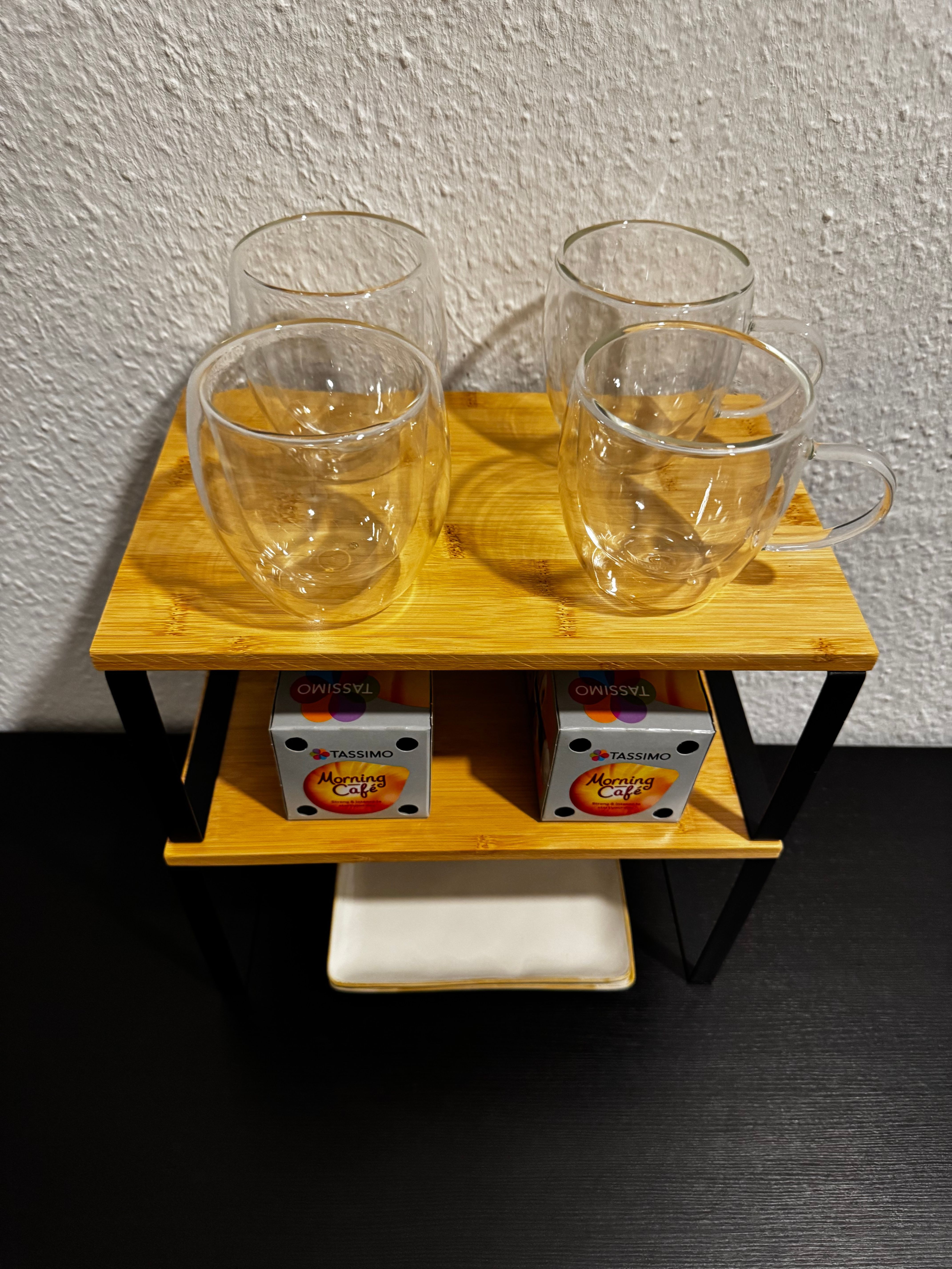 Ich bin mit meinem Kauf zufrieden. Diese Regale passen perfekt in meine Küche. Jetzt ist alles sortiert und ich habe mehr Platz. Es ist auch praktisch, wenn ich das Design ändern möchte – diese Regale lassen sich auseinandernehmen und separat verwenden. Sie sind aus hochwertigem Holz gefertigt und haben stabile, rutschfeste Füße.