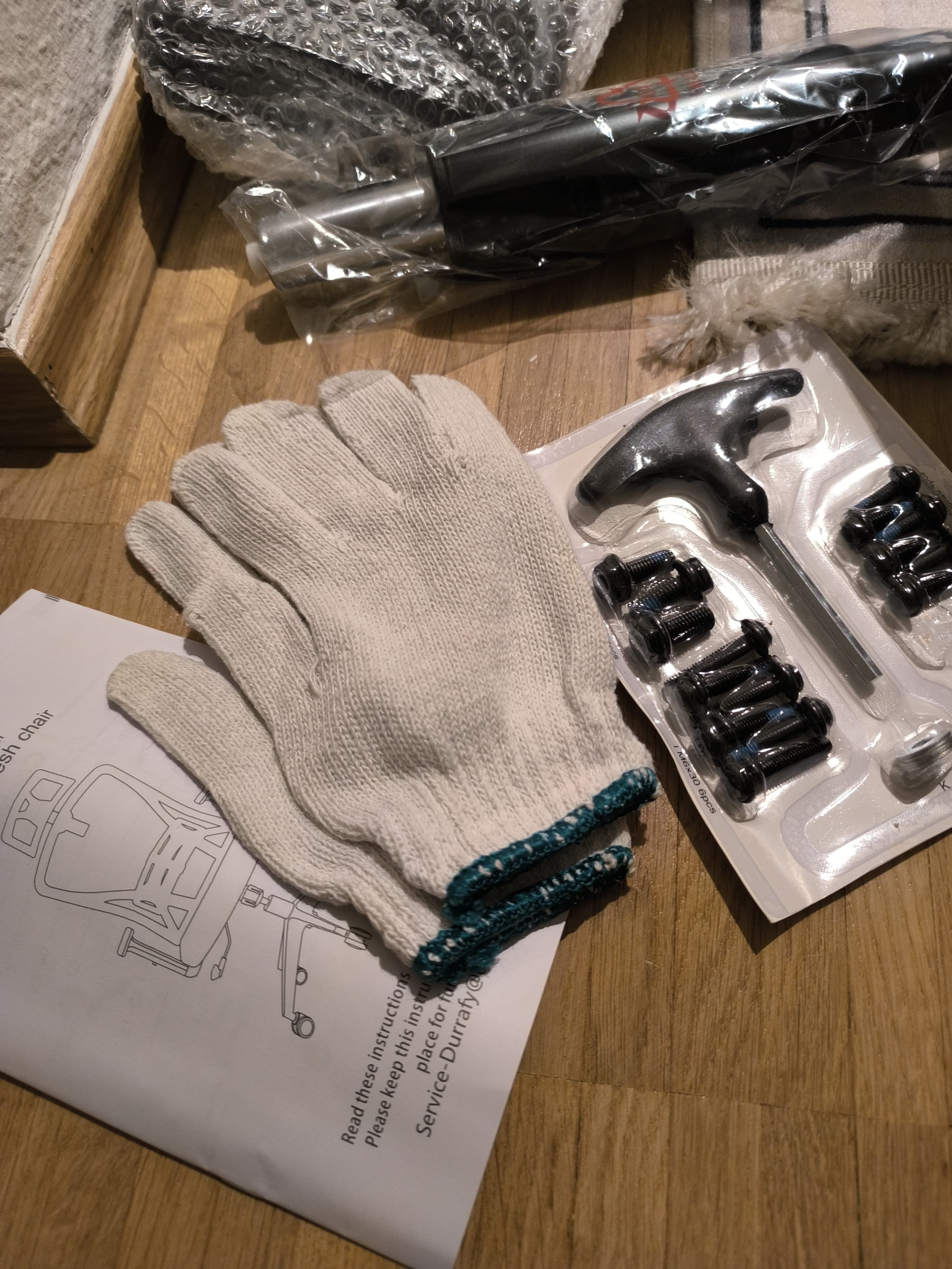Der Bürostuhl hat mich wirklich positiv überrascht. Er ist sehr bequem und bietet eine gute Unterstützung für den Rücken. Besonders praktisch finde ich, dass die Armlehnen sich leicht nach oben und unten verstellen lassen, sodass man die Sitzposition perfekt anpassen kann. Außerdem lag dem Paket sogar ein Paar Handschuhe für die Montage bei – eine durchdachte und sehr hilfreiche Beigabe. Die Montage selbst war unkompliziert und schnell erledigt. Insgesamt bin ich mit dem Stuhl und dem gesamten Kauf sehr zufrieden.