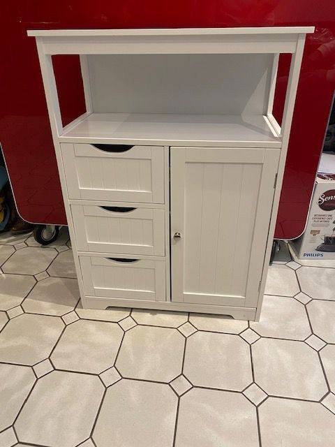 Für kleines Badezimmer gekauft und super zufrieden. Aufbau alleine recht einfach zu machen. Sehr gute Anleitung, da alle Teile nummeriert bzw. mit Buchstaben versehen. Gut verarbeitet. Geruch wie andere in Bewertungen beschrieben kann ich nicht bestätigen. 1x gründlich ausgewaschen und alles gut. Ein neues tolles Möbel wel hes ich mit gutem Gewissen weiterempfehlen kann.