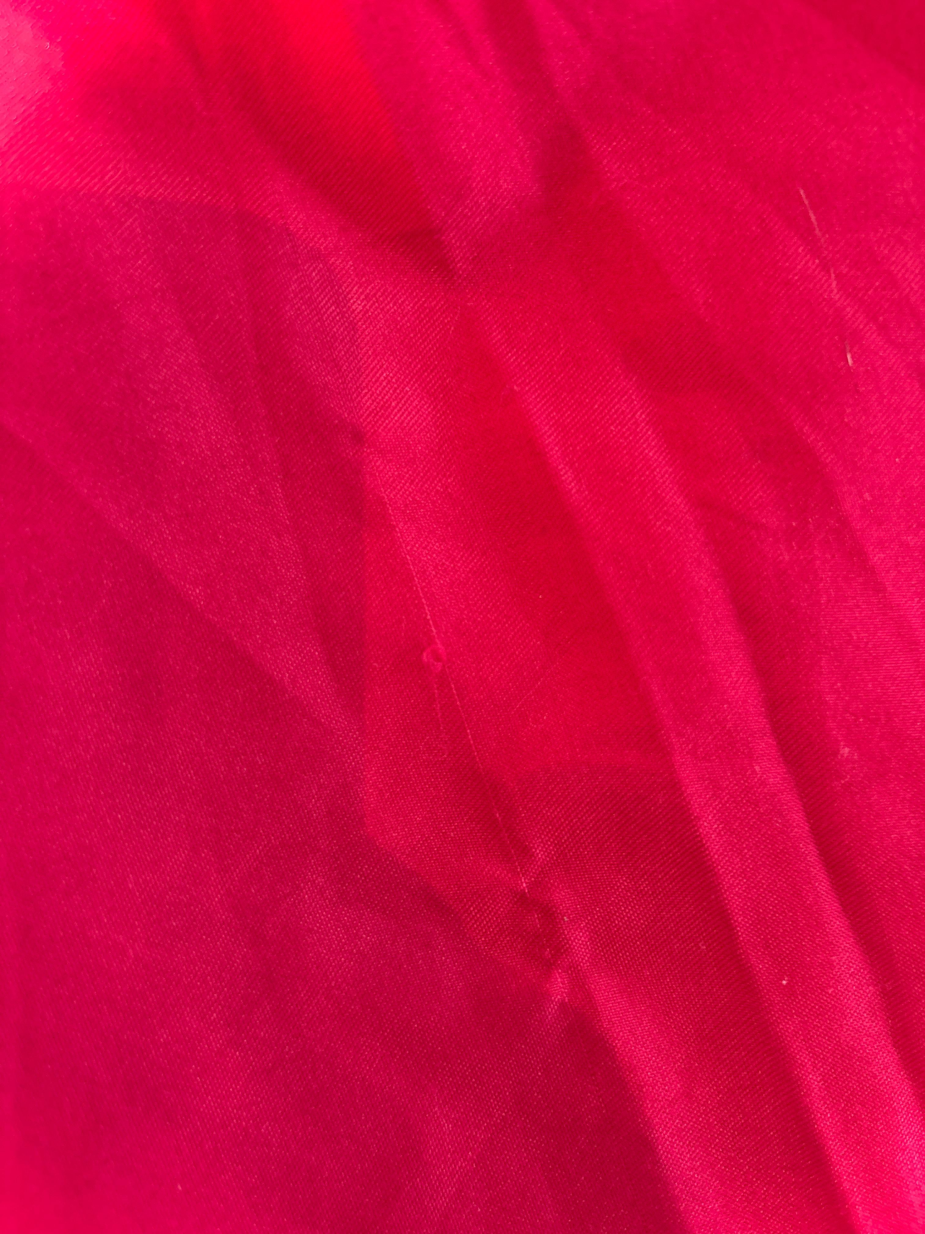 Der rosa Bezug hatte kleine braune Flecken und einen schwarzen Strich, wahrscheinlich abgefärbt vom Druck.
