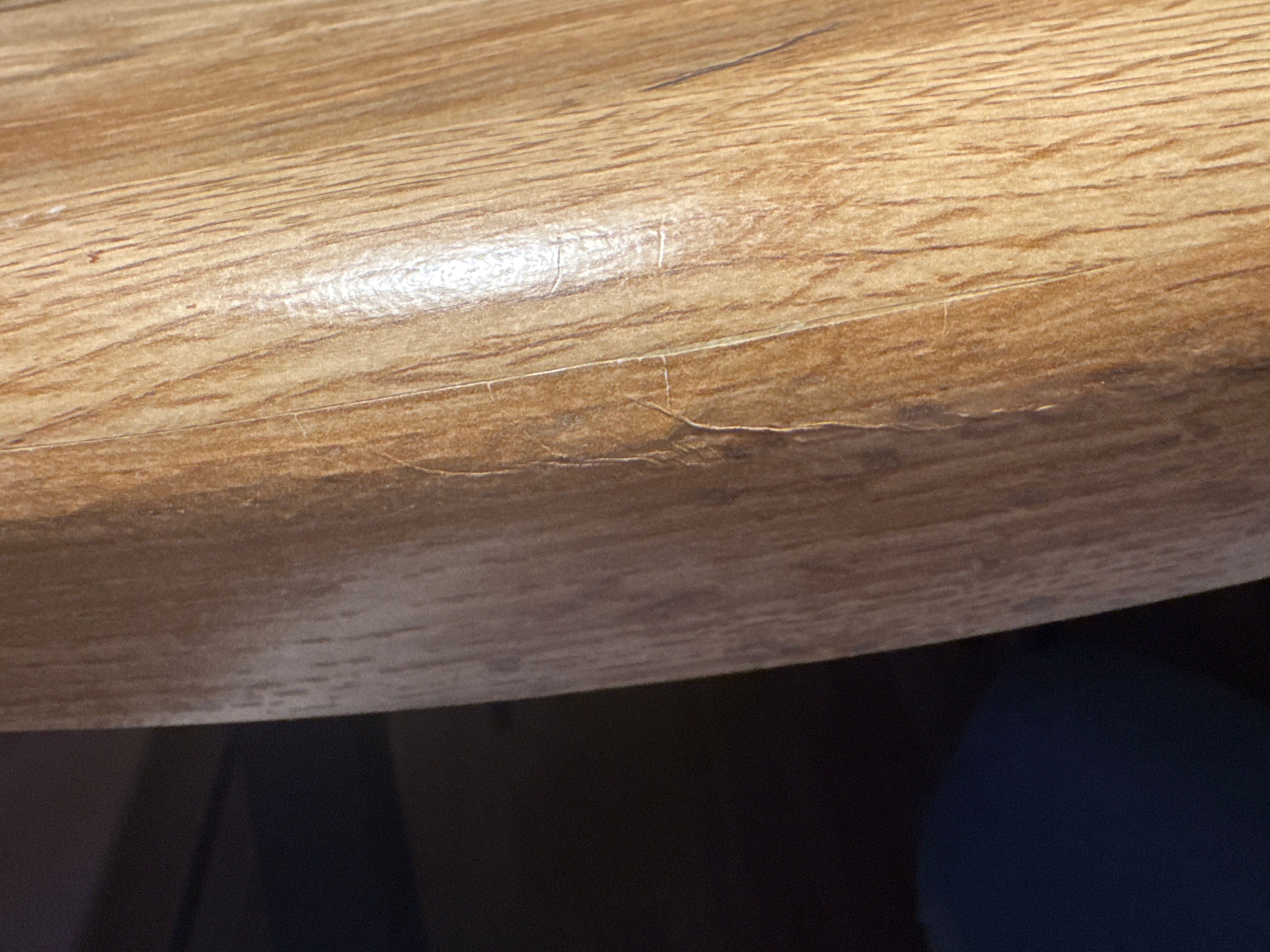 Trotz dieser pfleglichen Behandlung haben sich inzwischen an mehreren Stellen die Folienoberflächen gelöst. Für einen Tisch in dieser Preisklasse ist das äußerst enttäuschend und entspricht nicht meinen Erwartungen an die Qualität und Langlebigkeit des Produkts.