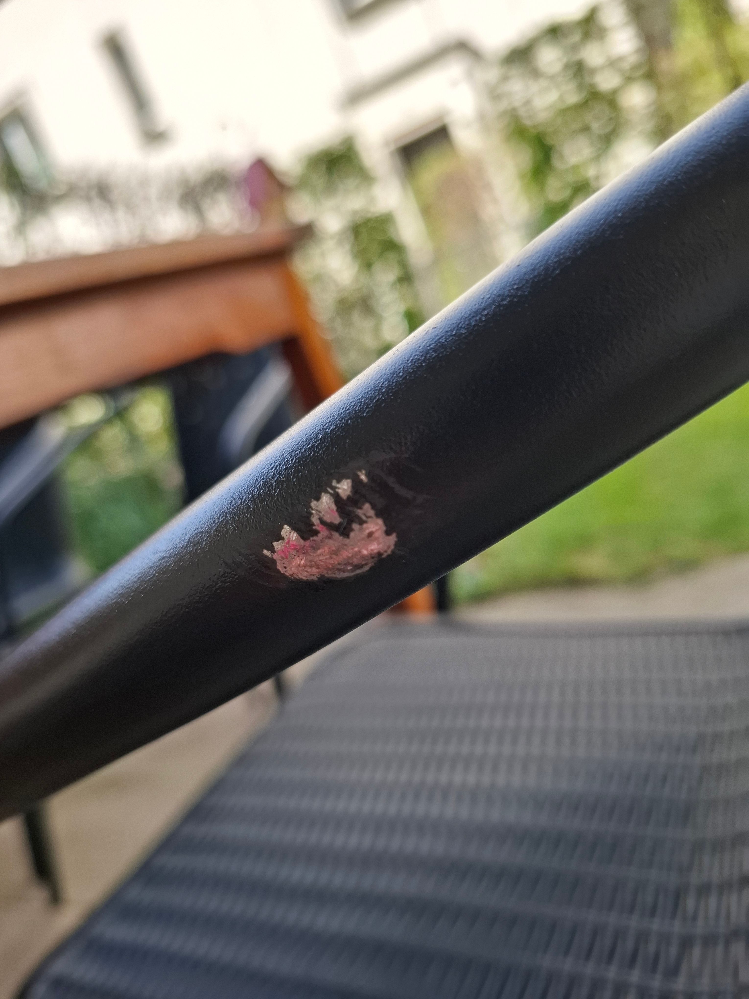 die beschichtung blättert ab und die stühle stehen gerademal einen tag im Garten.