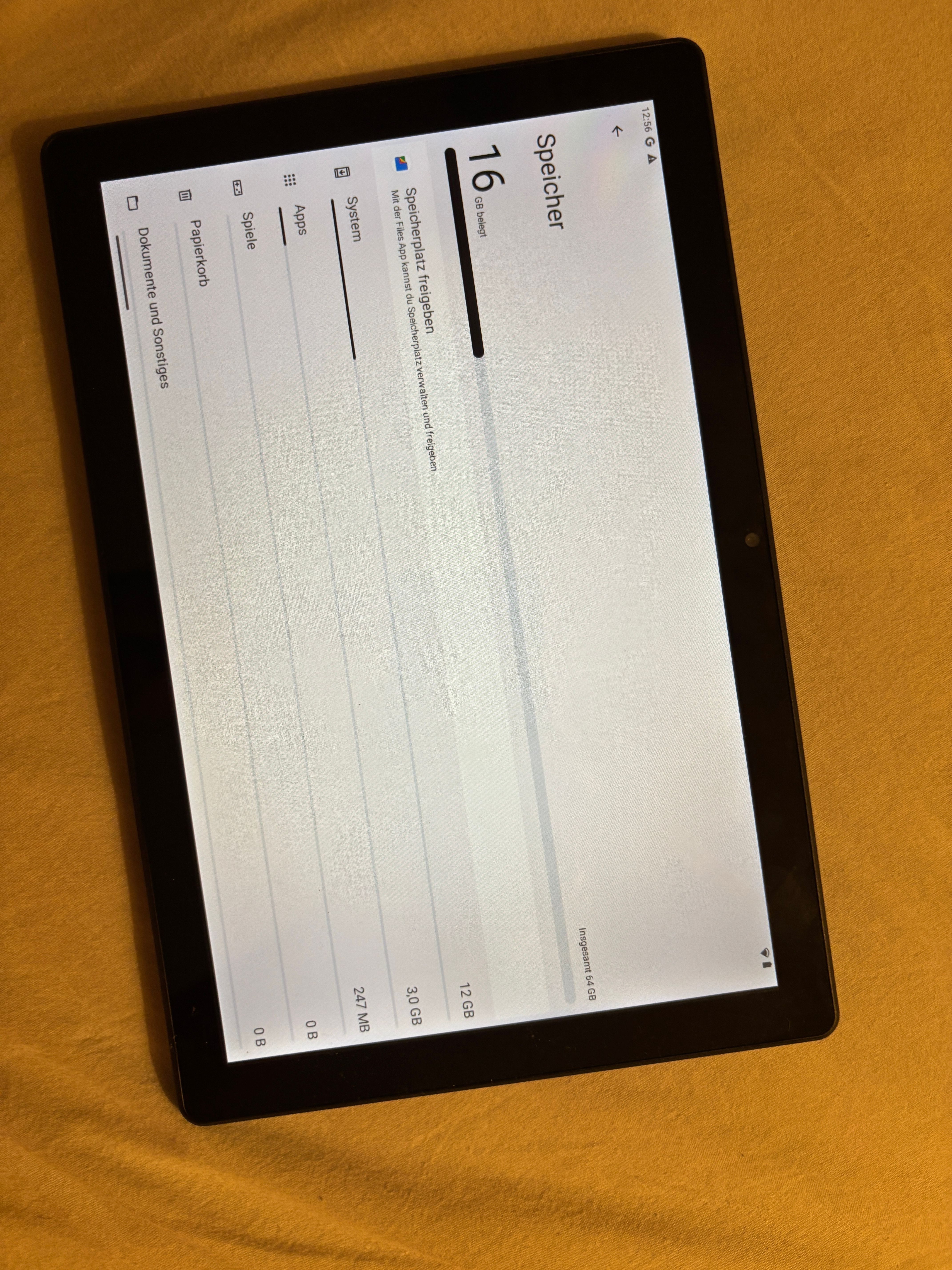 Mit 64 GB Speicherplatz bietet es ausreichend Raum für Apps und Fotos. Das Android 12 Betriebssystem läuft stabil und absolut problemlos und flüssig.