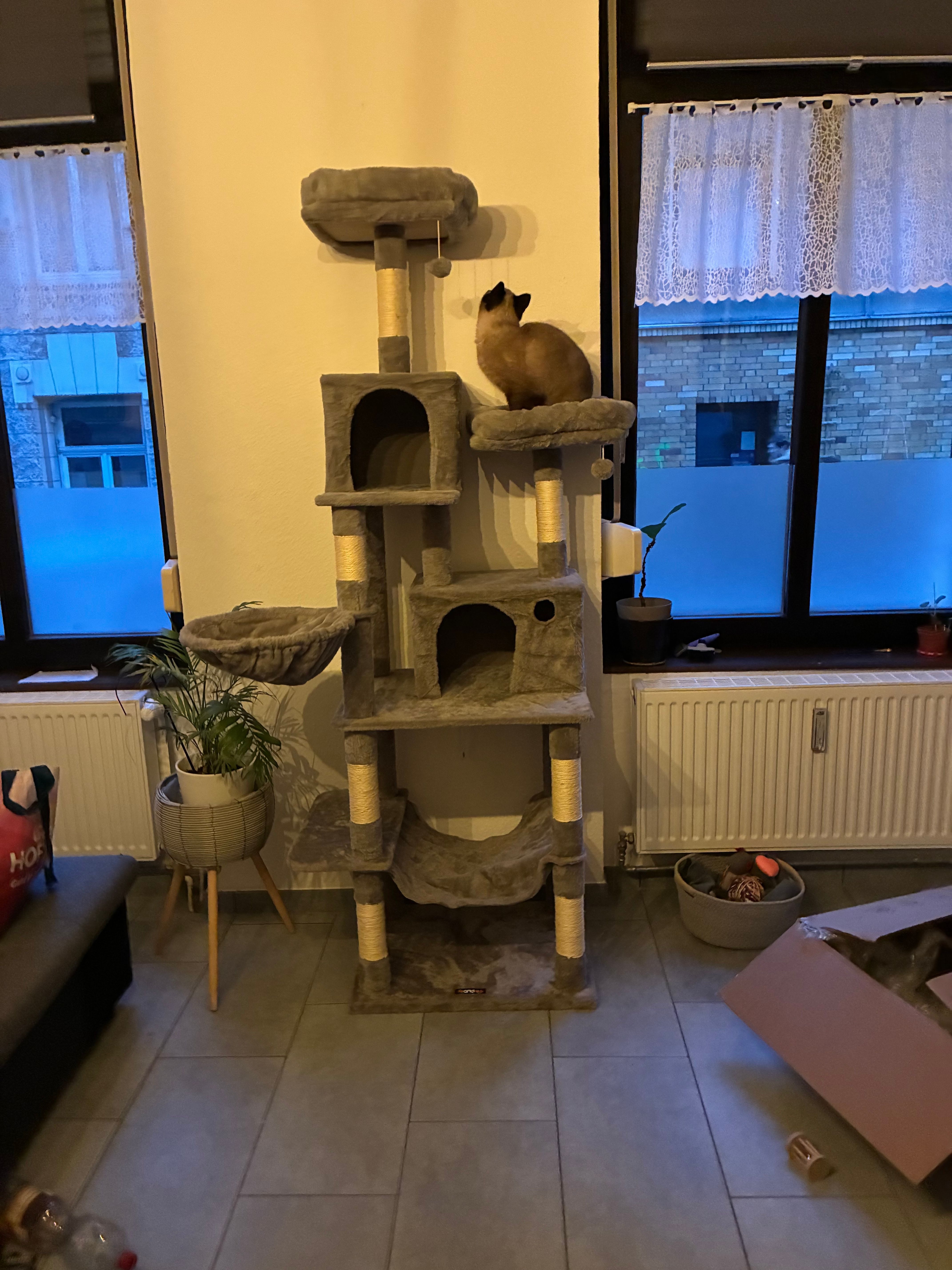 Das ist unser 2. Kratzbaum von Feandrea und unsere 2 Stubentiger haben ihn sofort belegt. Alles hat gepasst nichts hat gefehlt und man kann es auch alleine aufbauen nur mit der Katzenhilfe ist es lustiger .