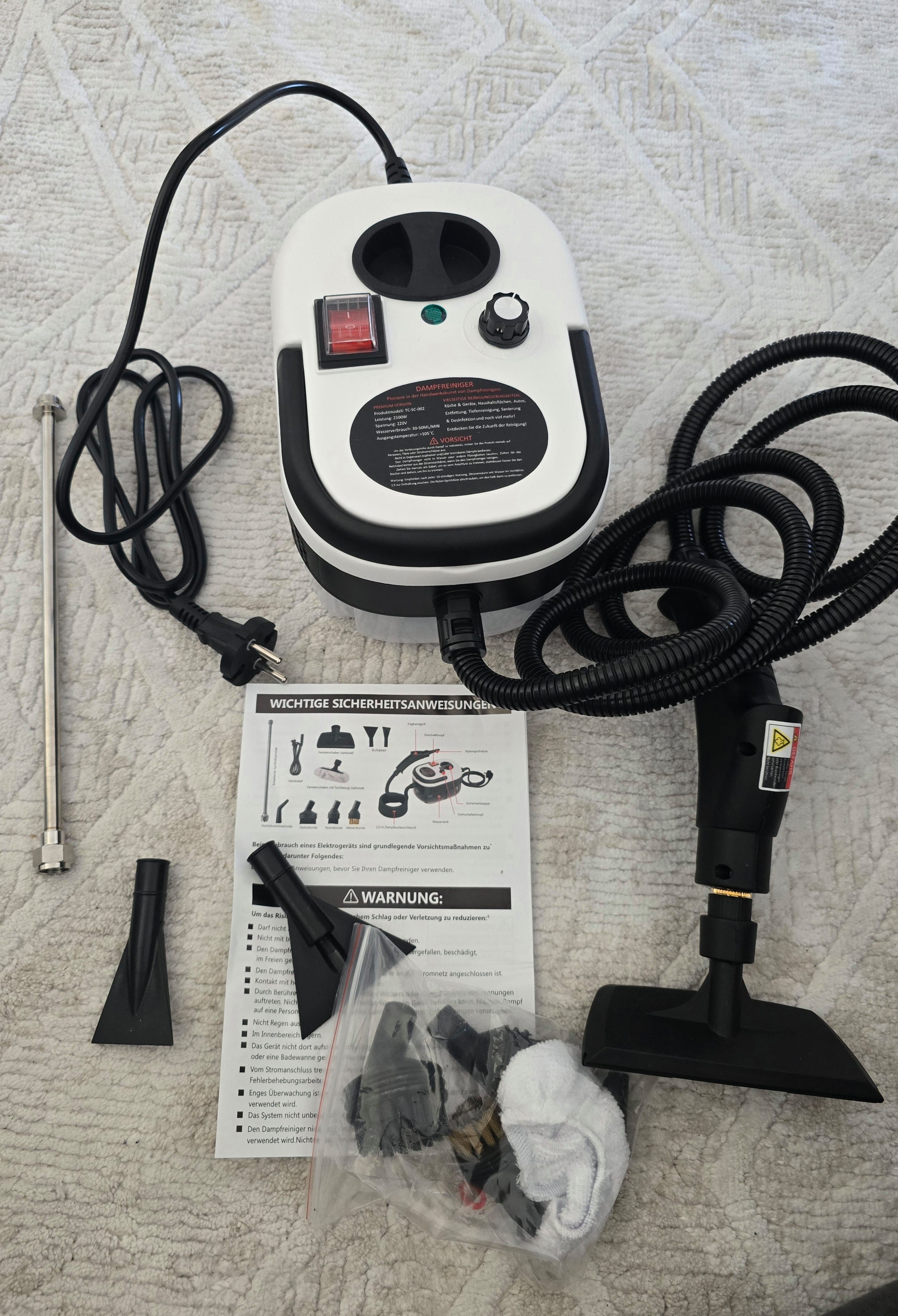 Mein erster Dampfreiniger und mit viel Überlegung und Recherche, habe ich mich für dieses Produkt entschieden. Ich muss sagen ich bin positiv überrascht. Lieferung war schnell, es war alles sicher verpackt.
