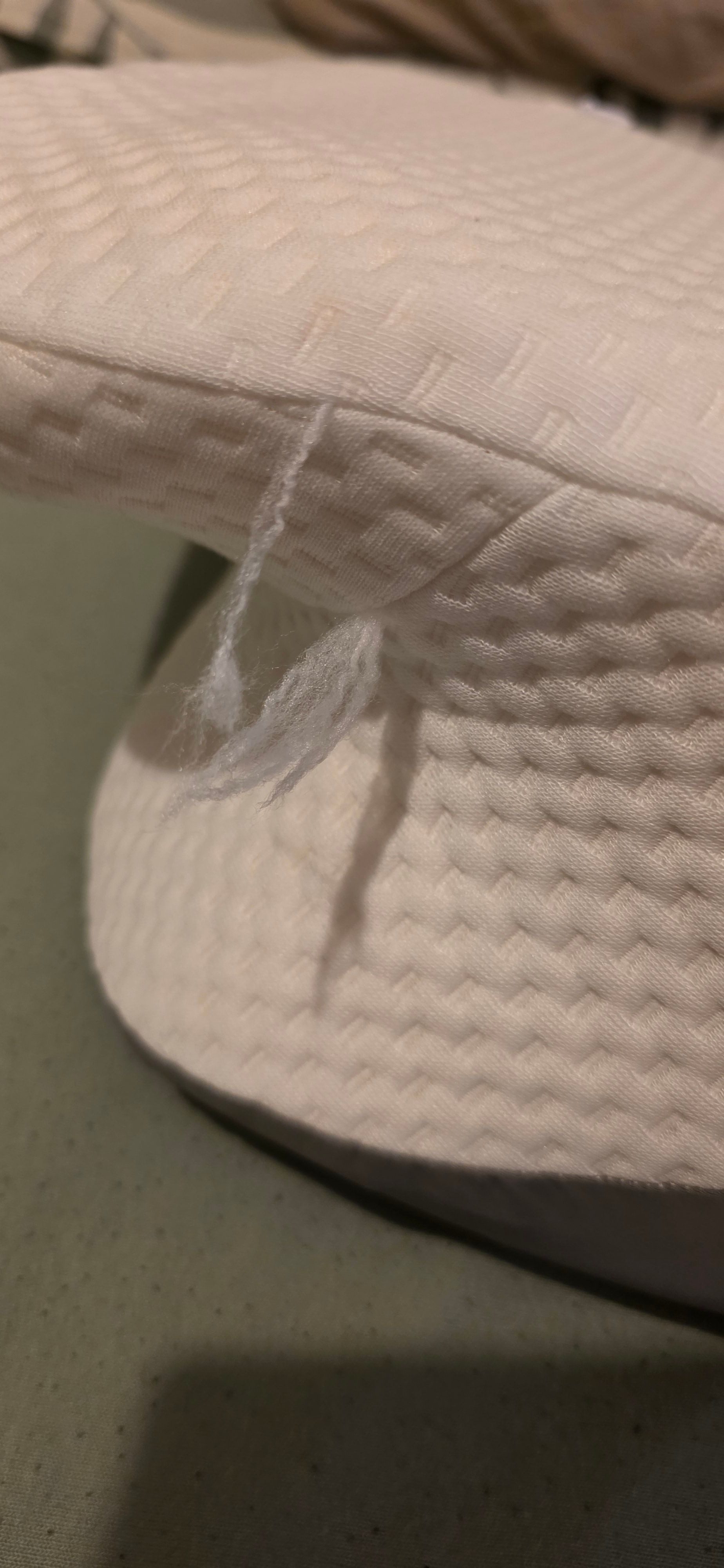 Das Kissen sieht gut aus und fühlt sich prima an. Erste Liegeerfahrung war sehr gut. Leider ist die Verarbeitung nicht so gut, es gucken Fransen heraus. Siehe Fotos