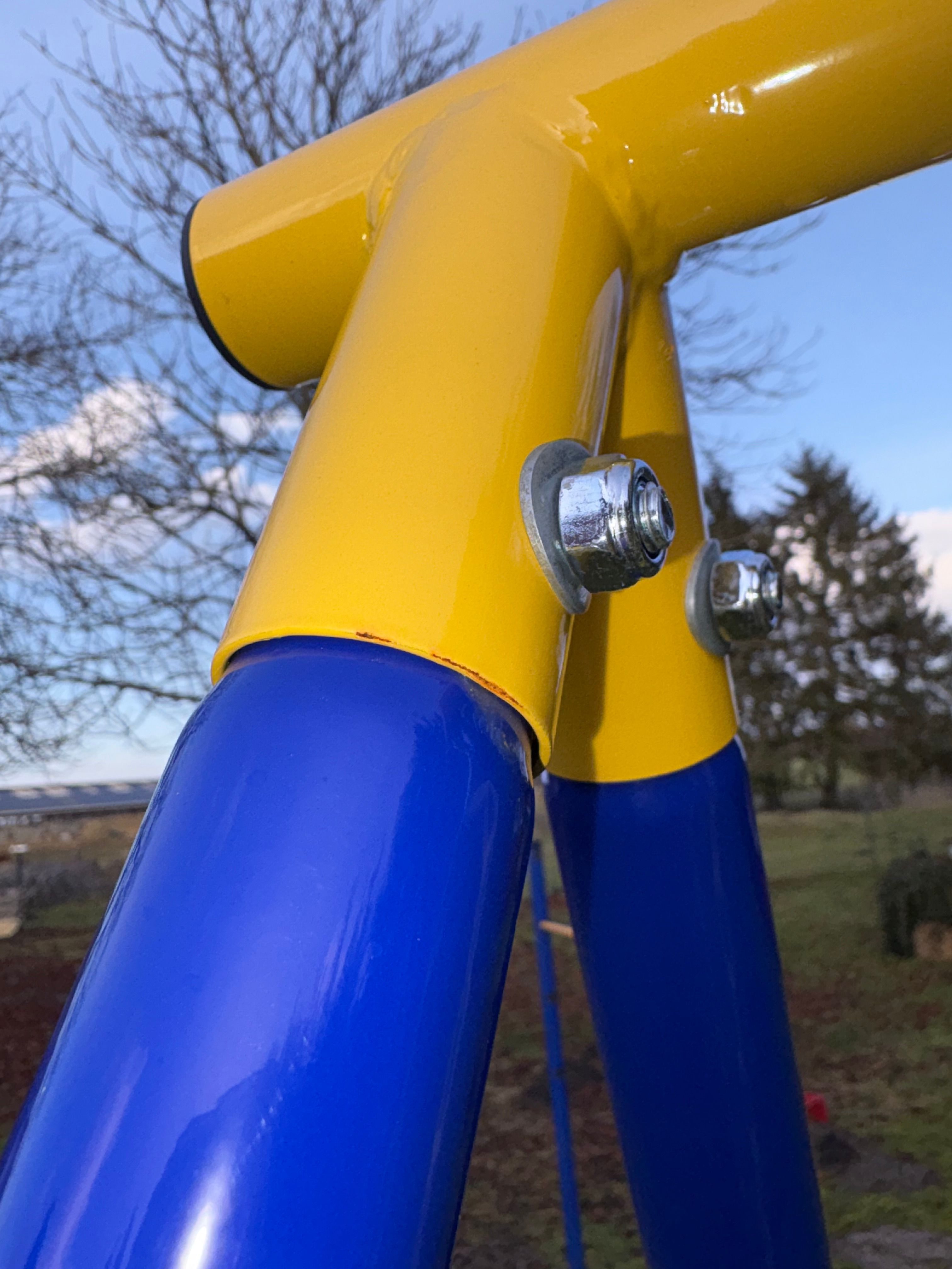 Wir haben dieses Schaukelgestell für unsere Enkelkinder im Garten aufgebaut.
