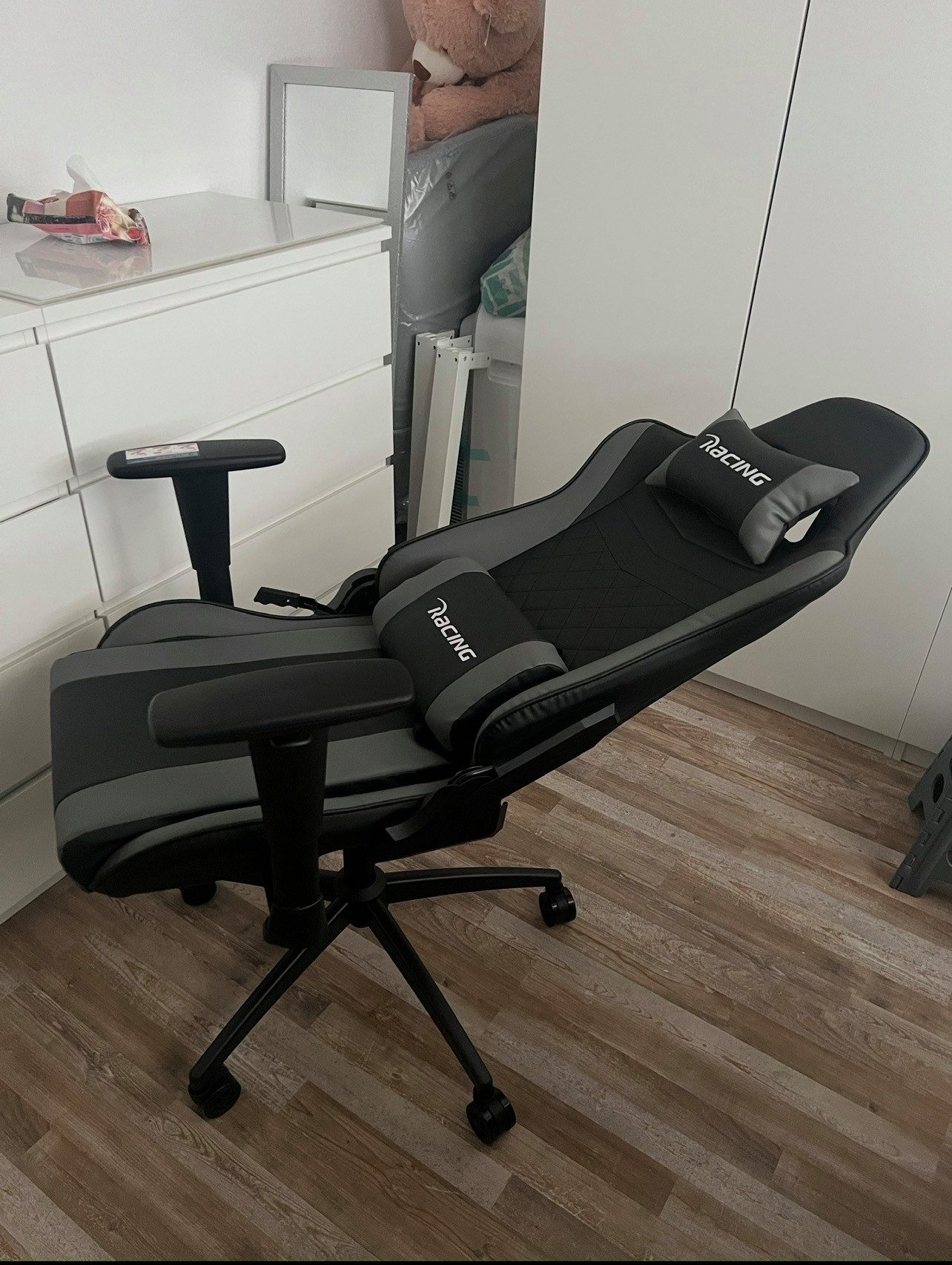 Ich bin mit dem Gaming-Stuhl wirklich sehr zufrieden. Schon beim Auspacken hat er einen hochwertigen Eindruck gemacht. Das moderne und elegante Design passt perfekt zu meinem Setup mit zwei Monitoren und sieht einfach richtig gut aus.