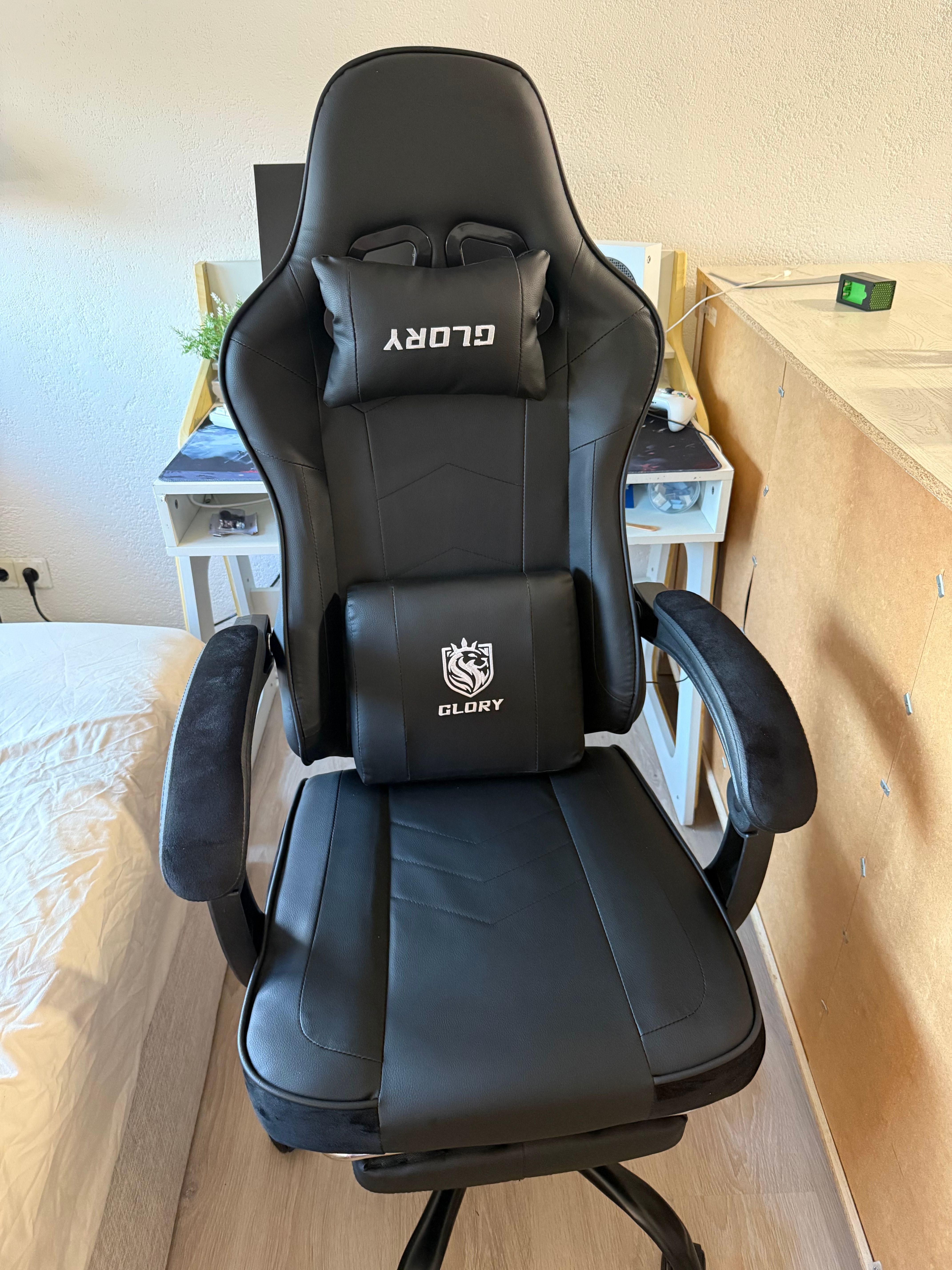 Es ist so bequem und das Design ist zu gut. Ich spiele viel und es ist immer noch so gut für längere Gaming-Stunden mit guter Rückenunterstützung. Beinstütze sorgt für zusätzlichen Komfort. Ich wäre beim vollständigen Hin- und Herschwenken etwas vorsichtig, da es einmal das Gleichgewicht verloren hat, aber ansonsten war es insgesamt ziemlich robust. Würde es auf jeden Fall empfehlen.