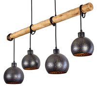 hofstein Pendelleuchte »Nave« 4-flammige Deckenlampe aus Metall in schwarz und kupferfarben, ohne Leuchtmittel, Vintage Look Pendellampe mit Holz in Natur, 4xE27