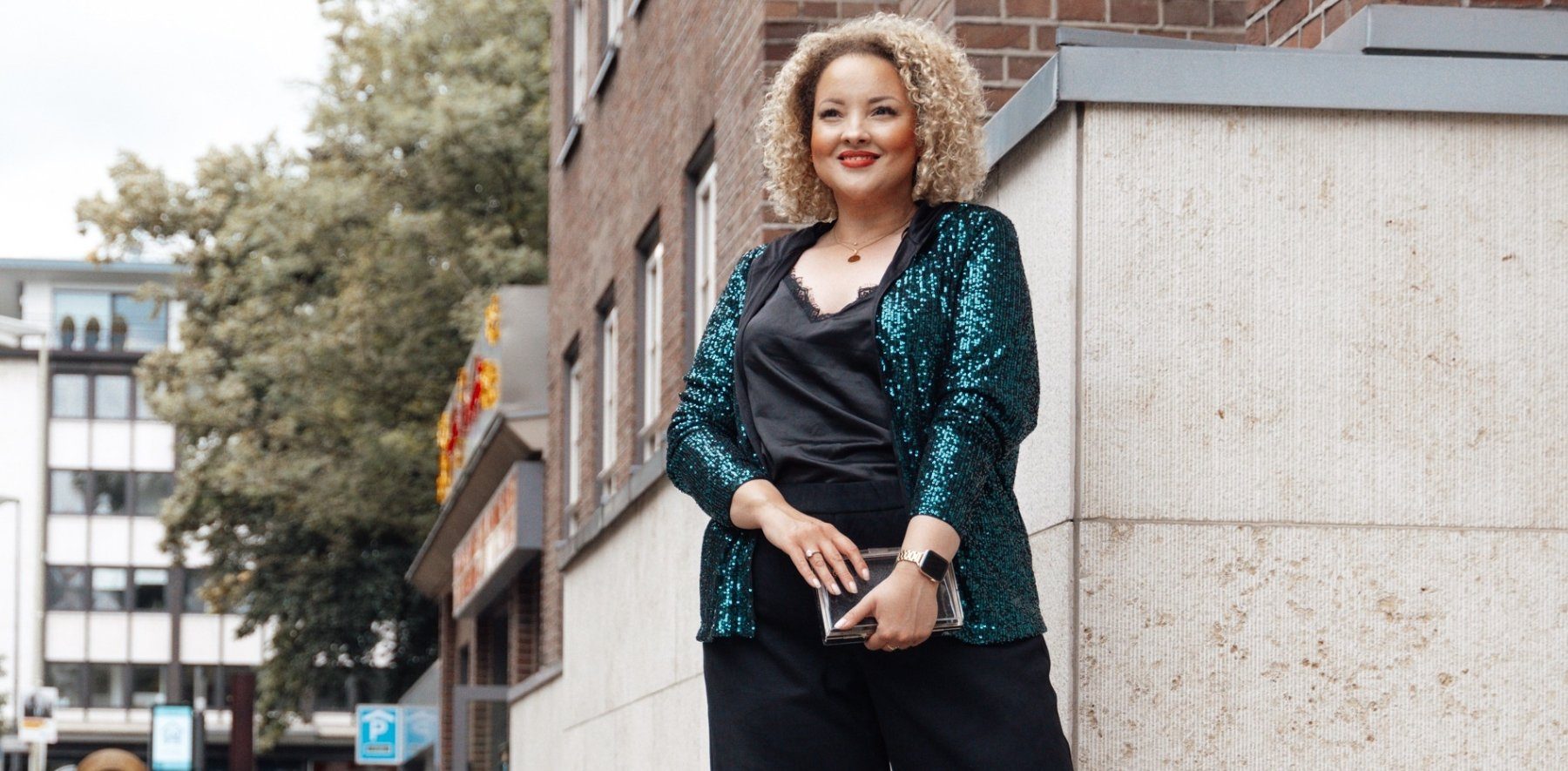 Die Auswahl an Glitzer-Pieces ist groß. Sowohl Pullover, Cardigans und Kleider als auch Röcke, Jacken oder sogar Hosen können mit Pailletten-Akzenten verziert sein. Wer es auffälliger mag, greift zu Bluse oder Shirt im All-Over-Look. Halte hierbei das restliche Outfit dezent.