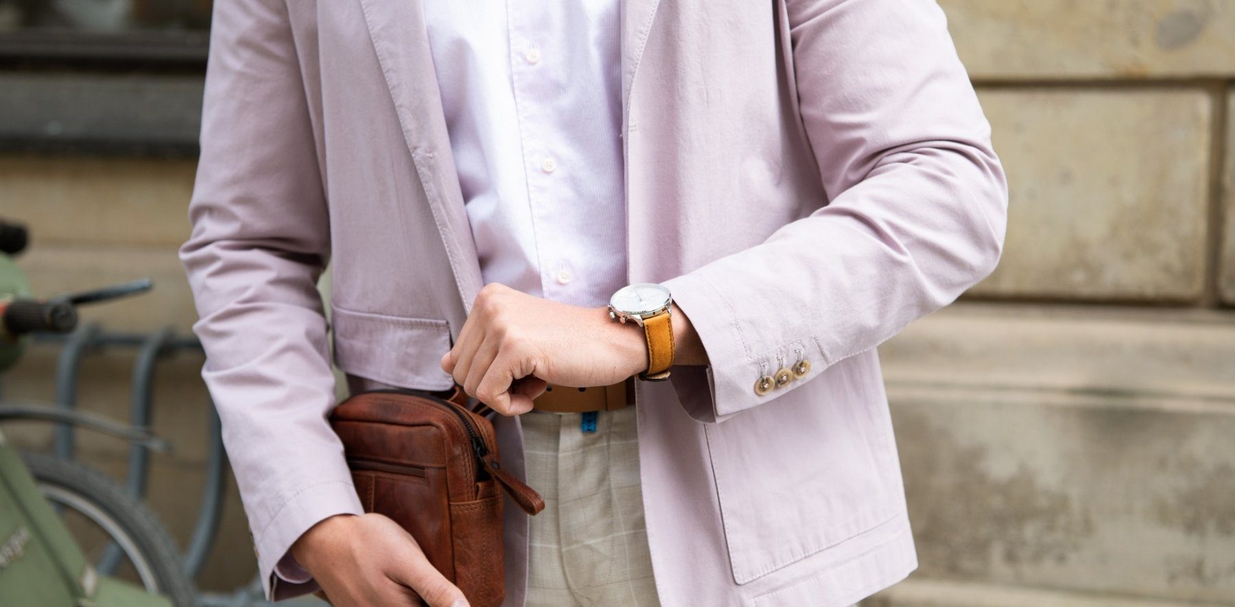 Diesen erreichst du durch die Kombination aus klassischen Teilen, wie einem Popelin-Hemd oder einer beigefarbenen Hose, und pastellfarbenen Varianten wie einem farbigen Sakko. Die Accessoires lassen den Look mediterran wirken, sind aber durchaus modisch. Ist dir dies zu viel, lässt du den Hut einfach weg und wählst zum Beispiel eine Aktentasche.