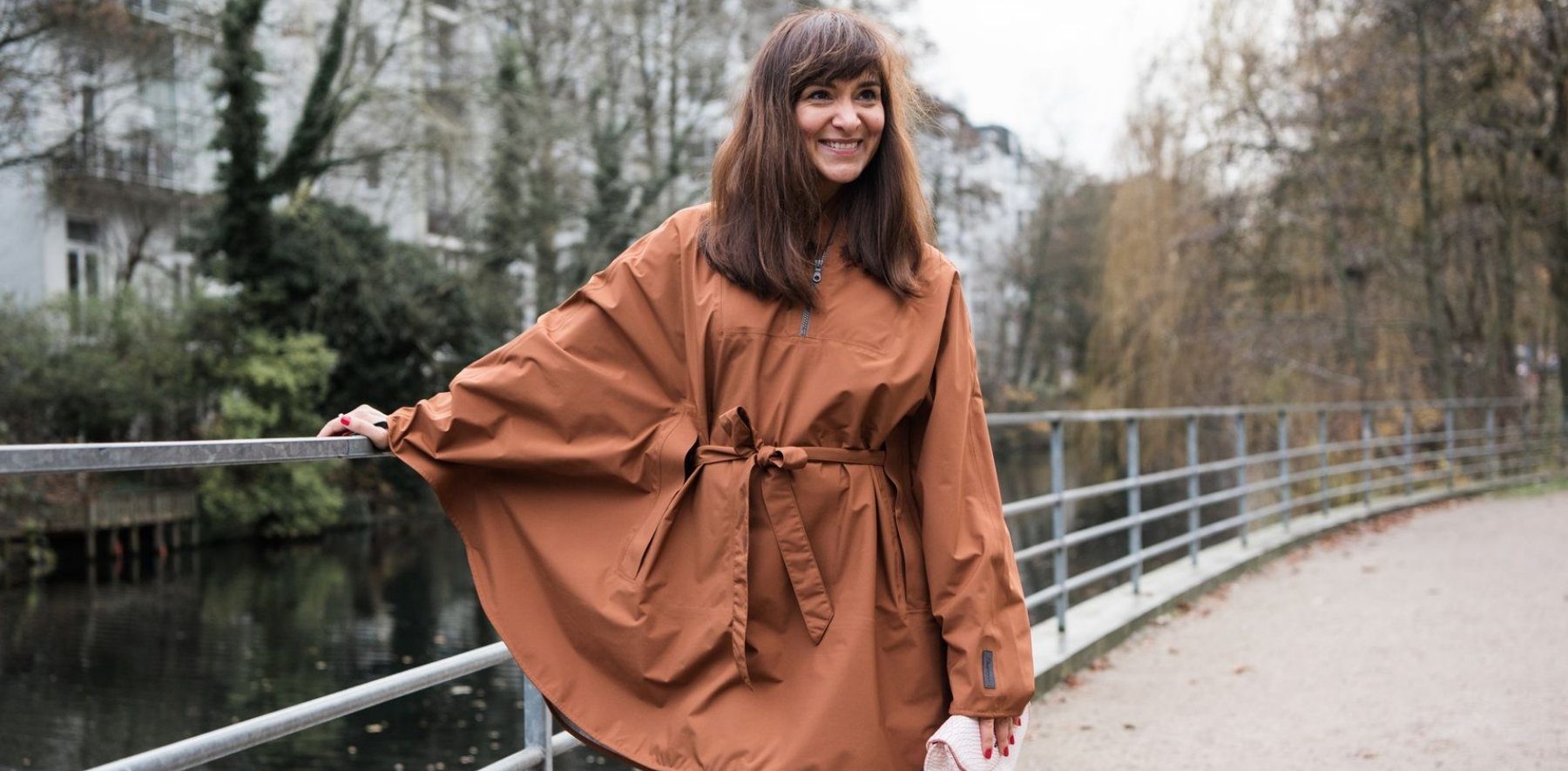 Es gibt kein schlechtes Wetter, nur die falsche Kleidung. Der braune Poncho ist nicht nur chic, sondern auch wasserdicht. Du kannst ihn also auch an kälteren Tagen auf deinem Fahrrad oder bei deinem Einkaufsbummel in der Stadt tragen. Um dich warm zu halten, kombiniere einen langärmligen Pullover unter deinem Poncho.