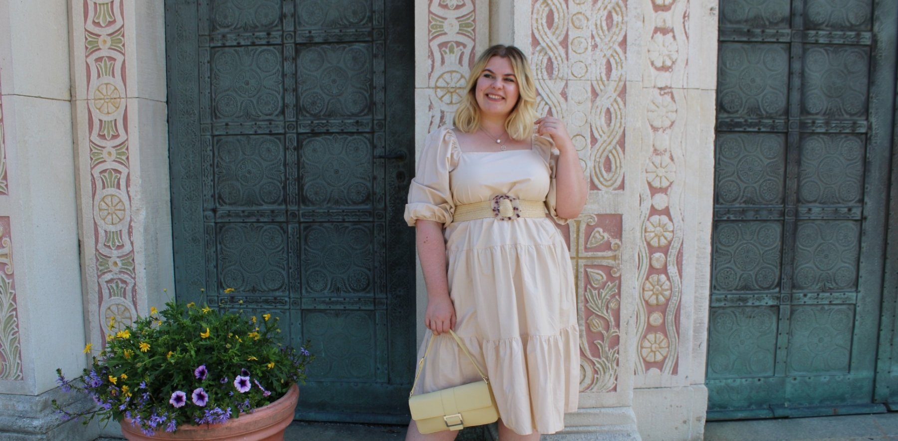 Besonders schön sind Volant-Kleider mit Ballonärmeln. Damit es nicht zu voluminös wirkt, eignet sich ein Taillengürtel, der die Figur hervorhebt. Ein eckiger Ausschnitt öffnet den Blick auf dein Outfit und lockert somit den Look auf.