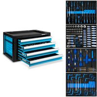 EBERTH Werkstattwagen 167-teilig bestückt, 7 Schubladen, 5 Davon mit Werkzeug gefüllt, Doppelwandiger Werkzeugwagen aus Stahl, Blau Pulverbeschichtet