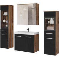 Homeline Badmöbel-Set Bad Möbel Set, Hochglanz, Eiche schwarz und weiß Soft Close, (Set Angebot, 6-St., Spar set)
