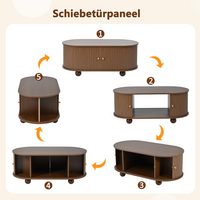 STILVORA Sideboard mit Schiebetüren,Ovaler Sofatisch Kaffeetisch mit Kugelform-Tischbeine (Satztisch, Wohnzimmertisch Beistelltisch, 1 St., 2 Schiebetür), ovale Form, Vertikale gestreifte Schranktüren