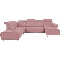 Places of Style Wohnlandschaft Costello U-Form, B: 363 cm mit Sitztiefen-, Armteilverstellung &, 3 Nierenkissen, optional Bettfunktion & Bettkasten