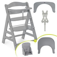 Hauck Hochstuhl Alpha Plus Grau (Set), Holz Kinderhochstuhl Babystuhl mit Essbrett, Sitzkissen - verstellbar