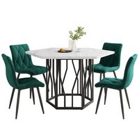 Flieks Essgruppe sechseckiger Esstisch mit 4 Stühlen Set, (Set, 5-tlg., 1 Tisch mit 4 Stühlen), Sitzgruppe Küchetisch 115,5x100x75 cm Esszimmerstuhl Samt