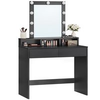 VASAGLE Schminktisch mit LED-Beleuchtung, Frisiertisch mit Spiegel (1 Tisch), Kosmetiktisch mit Schubladen, offenen Fächern, verstellbaren Ablagen
