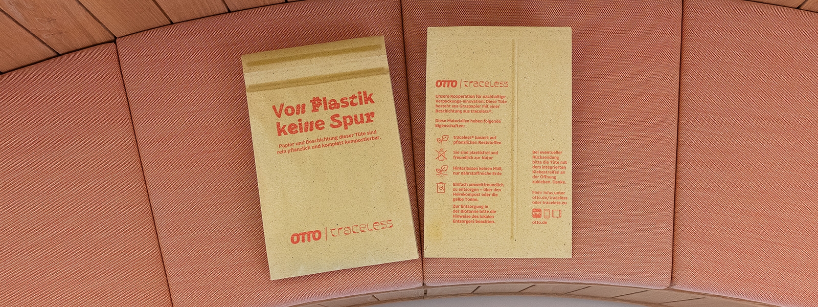 Gemeinsam mit dem Hamburger Start-up traceless entwickeln wir derzeit eine Alternative zu unseren Versandtüten und Polybeuteln. Das traceless Material besteht aus natürlichen Polymeren und ist komplett biologisch abbaubar und heimkompostierbar, da es sich unter den richtigen Bedingungen nach wenigen Wochen komplett zersetzt. Anders als bei herkömmlichen Plastiktüten wird für traceless kein Plastik eingesetzt, sondern pflanzliche Reststoffe aus der Agrarindustrie, z. B. aus Brauereien oder aus der Stärkeproduktion. Das Material ist neben Versandtüten auch für andere Produkte einsetzbar, die in der Regel aus Einwegplastik hergestellt werden.