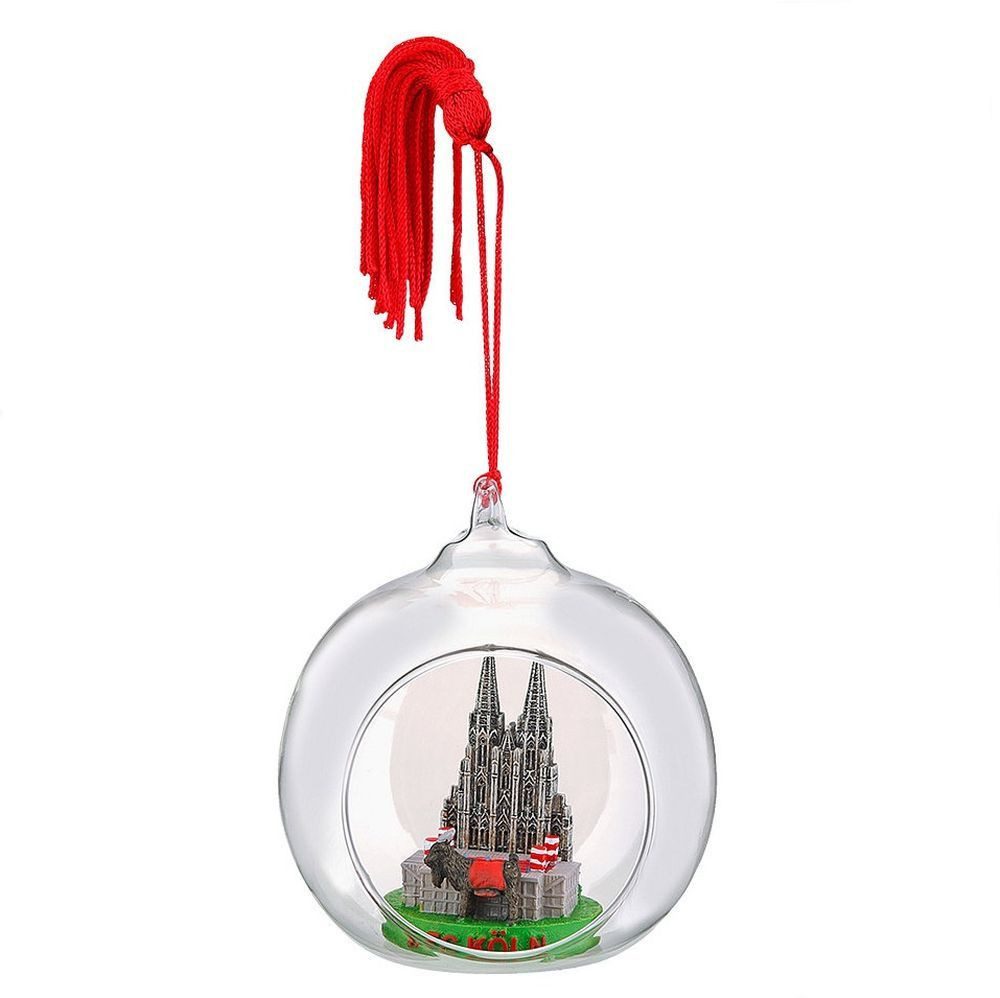 • Christbaumkugel aus Glas • Innen befindet sich das RheinEnergieSTADION, der Kölner Dom und unser Hennes • Zum Aufhängen oder Hinstellen • Durchmesser der Kugel: 7,5cm (ohne Aufhängung) Material: Glas , Polyresin