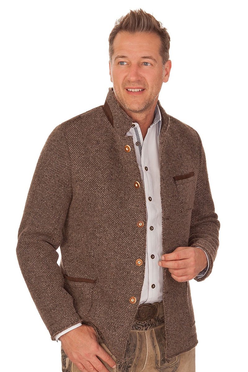 Der zünftige Herren Strickjanker Flirsch zeigt sich fesch und modern in Tracht! Die klassisch schöne Herrenjacke bietet durch den lässig-sportiven, leicht taillierten Schnitt und den weichen Wollanteil einen angenehmen Tragekomfort. Der Janker hat ein fantastisches, Akzente setzendes Strickmuster und einen tollen Stehkragen. Der Kragen, die Bündchen und der Saum wurden mit trendigen, offenen Kanten betont. Die Knöpfe in Hirschhorn-Optik sowie der Abnäher am Kragen, die Ellenbogenschoner und der Saum der Taschen in Leder-Optik passen perfekt zu der modisch-rustikalen Trachtenjacke der Marke 1890 Country by Murk. Vorn gibt es zwei Eingrifftaschen und auf der linken Seite befindet sich eine Brusttasche. An der linken Seitentasche ist ein kleines Markenlogo in Leder-Optik angebracht und am linken Arm befindet sich ein schickes Emblem aus Metall. Der Strickjanker in hoher Qualität ist auch in den Übergrößen 56-60 erhältlich - bitte beachten Sie die Übergrößenzuschläge.