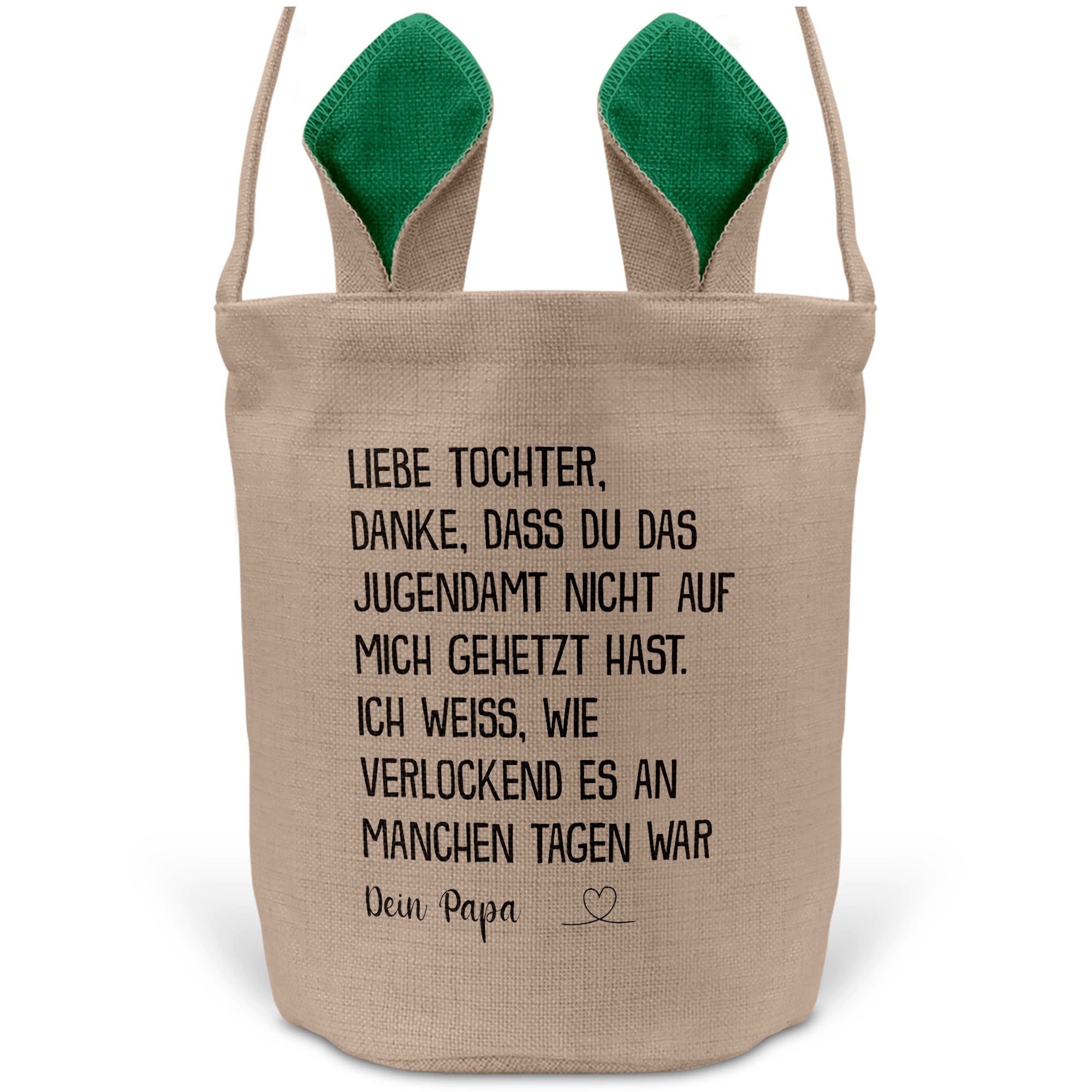 OSTERKORB MIT HENKELN: Charmante Alternative zum traditionellen Osterkorb mit Leinenoptik und niedlichen Hasenohren.