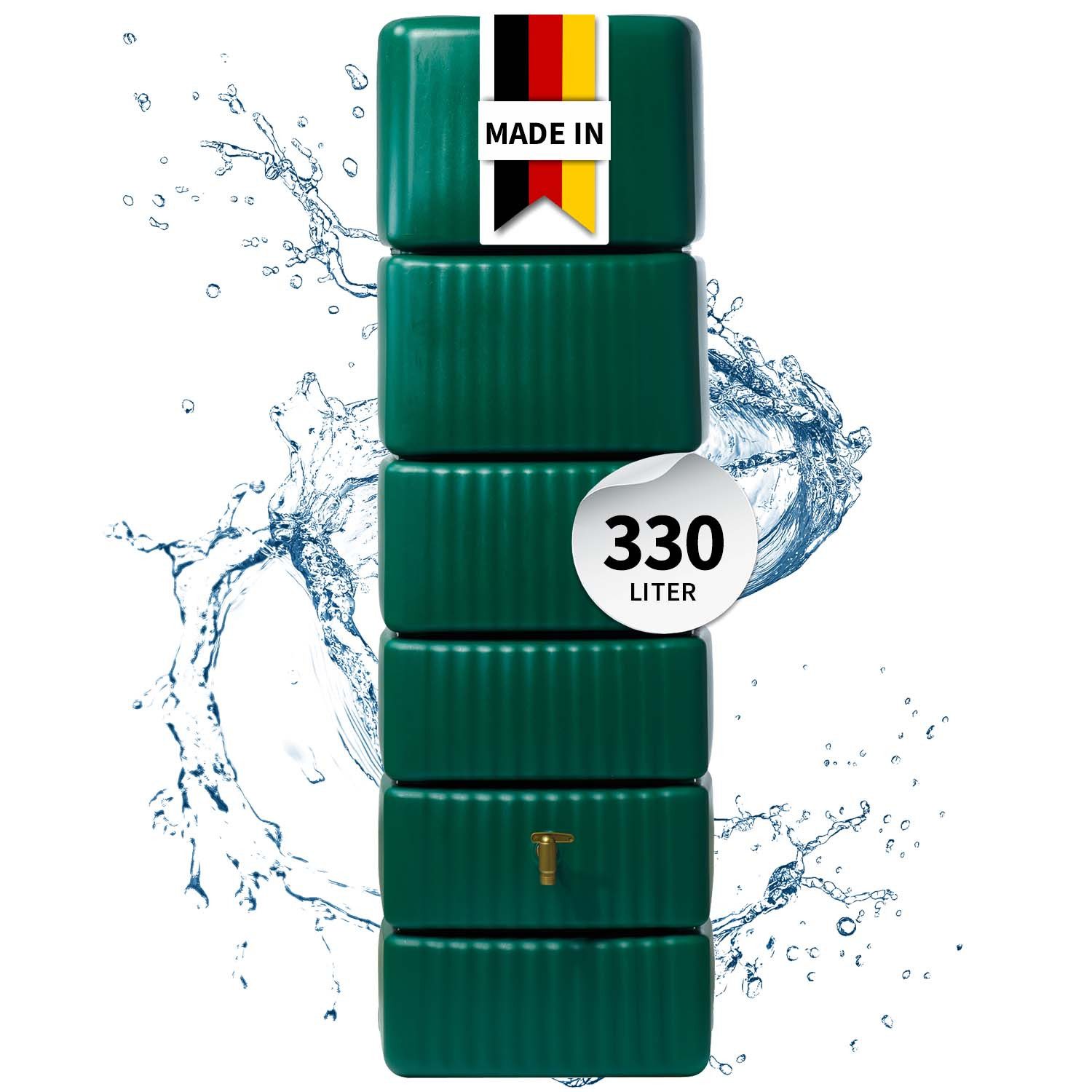 4rain Slim Wandtank dunkelgrün - der Klassische. Dieser schlanke Regenwasserbehälter eignet sich mit seiner schlichten Optik und der zeitlosen, grünen Farbgebung für eine Vielzahl an Gestaltungsmöglichkeiten in Ihrem Garten. Entscheiden Sie sich für eine Nachhaltige Gartenbewässerung, schonen Sie wertvolle Ressourcen und vor allem Ihren Geldbeutel. Sammeln Sie ab sofort Regenwasser, das ohnehin kostenlos vom Himmel fällt. Der Tank zur Aufstellung an der Hauswand, bietet Ihnen hierfür ein Speichervolumen von 330 Litern bei geringem Platzbedarf. Der Behälter verfügt außerdem über zwei Gewindeanschlüsse 19 mm (3/4") zur Wasserentnahme, z. B. für die Montage des mitgelieferten Auslaufhahns, eines Schlauchsets (optionales Zubehör) oder zur Restentleerung vor der Frostperiode. Zusätzlich befindet sich auf der Oberseite der Regentonne eine Deckelöffnung mit einem Durchmesser von 18 Zentimetern. Besonders robust und langlebig - witterungsbeständige Materialien mit hohem UV-Schutz sorgen für eine lange Lebensdauer beim Einsatz im Freien. Bereits bei der Entwicklung eines 4rain Produkts wird sehr viel Wert auf ein nachhaltiges Produktdesign gelegt. Dieser Regenwasserbehälter wird aus Recyclingkunststoff hergestellt und ist zu 100 % recycelbar. Qualität "Made in Germany". Hinweis: Behälter muss bei Frostgefahr im Winter vollständig entleert werden.