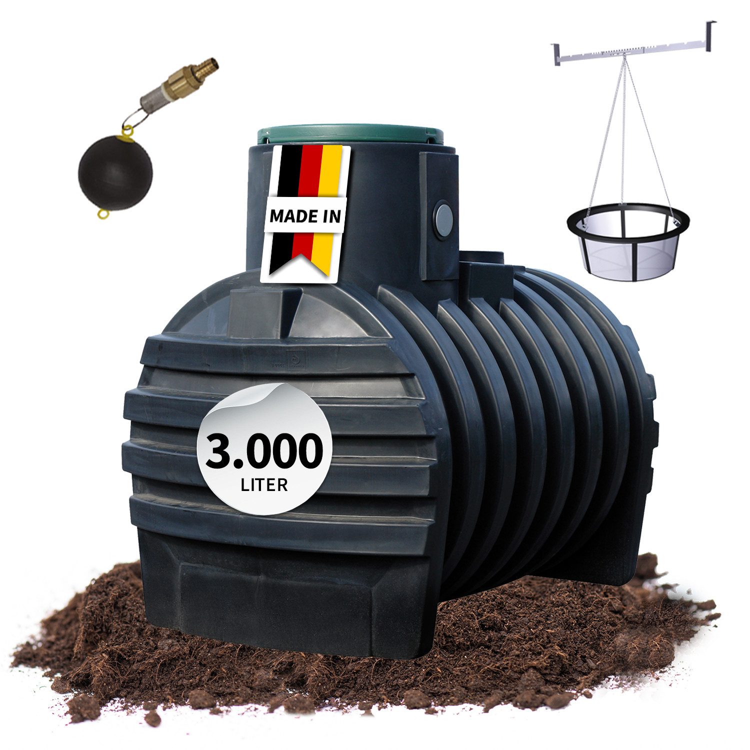 4rain Retentionszisterne Mono 3.000 Liter - zur Kanalentlastung und Regenrückhaltung! Eine Retentionszisterne hält Niederschläge zurück und gibt diese zeitverzögert an die Kanalisation ab. Der Kanal wird damit bei Niederschlägen entlastet. Für die zeitverzögerte Abgabe des Regenwassers ist in der Retentionszisterne eine sog. Ablaufdrossel montiert. Der Abflusswert kann zwischen 0,05 bis 2 l/sek. eingestellt werden. Bei starkem Regen steigt der Wasserstand der Zisterne kurzfristig an und wirkt als Puffer. Durch die Drossel wird das angesammelte Volumen langsam an das Kanalisationsnetz oder eine Versickerungsanlage abgegeben. Durch einen integrierten Notüberlauf in allen 4rain Retentionszisternen, wird ein Überlaufen des Speichers verhindert. Der Mono Erdtank zeichnet sich durch seine monolithische Bauweise aus, er wird aus einem Stück gefertigt und überzeugt somit durch seine hohe Stabilität und Sicherheit. Die anschlussfertigen, vormontierten Lippendichtungen und der angeformten Tankdom sorgen für eine schnelle und einfache Montage. Die im Lieferumfang enthaltene doppelwandige, rasengrüne Kunststoffabdeckung lässt sich kindersicher verschließen. Die kurzfristige Belastung der begehbaren PE-Abdeckung beträgt max. 150 kg, die langfristige Flächenbelastung liegt bei max. 50 kg. Zu Ihrer Sicherheit ist das Mono Tanksystem außerdem gegen das Eindringen von Sickerwasser geschützt. Wenn Sie sich für ein 4rain Produkt entscheiden, entscheiden Sie sich für nachhaltige Produkte, das Behältermaterial ist zu 100 % recycelbar. 15 Jahre Herstellergarantie bestätigen den hohen Qualitätsanspruch dieses Produktes. Max. Erdüberdeckung ab Tankschulter 1000 mm. Die Höhe des Erdtanks bis Tankschulter beträgt 144 cm. Hinweis: frostsicherer Einbau nur möglich in Verbindung mit Teleskop-Domschacht (separat erhältlich). Bei Bestellung bitte den gewünschten Ablaufwert im Bereich von 0,05 bis 2,0 l/sek. angeben.