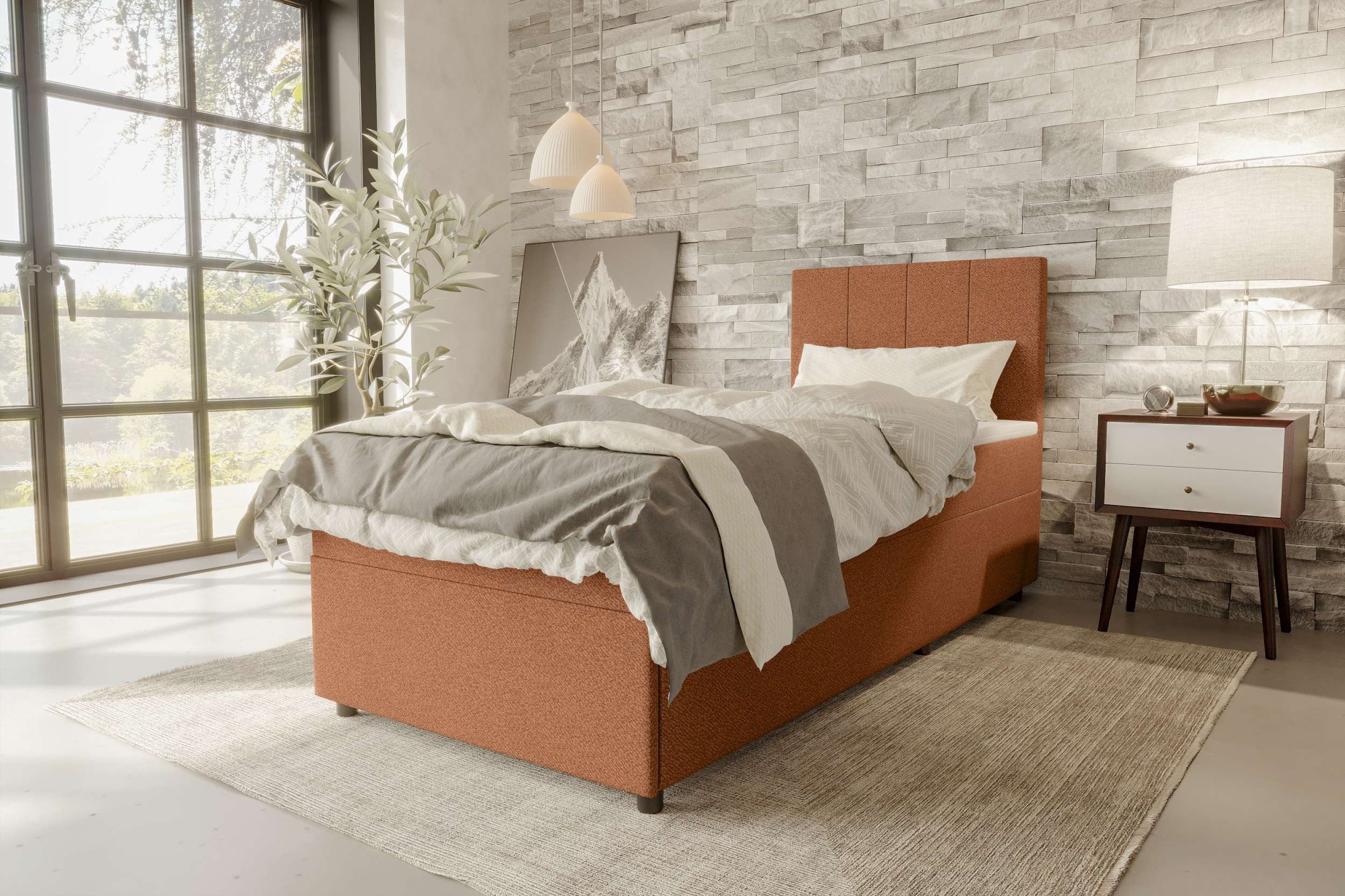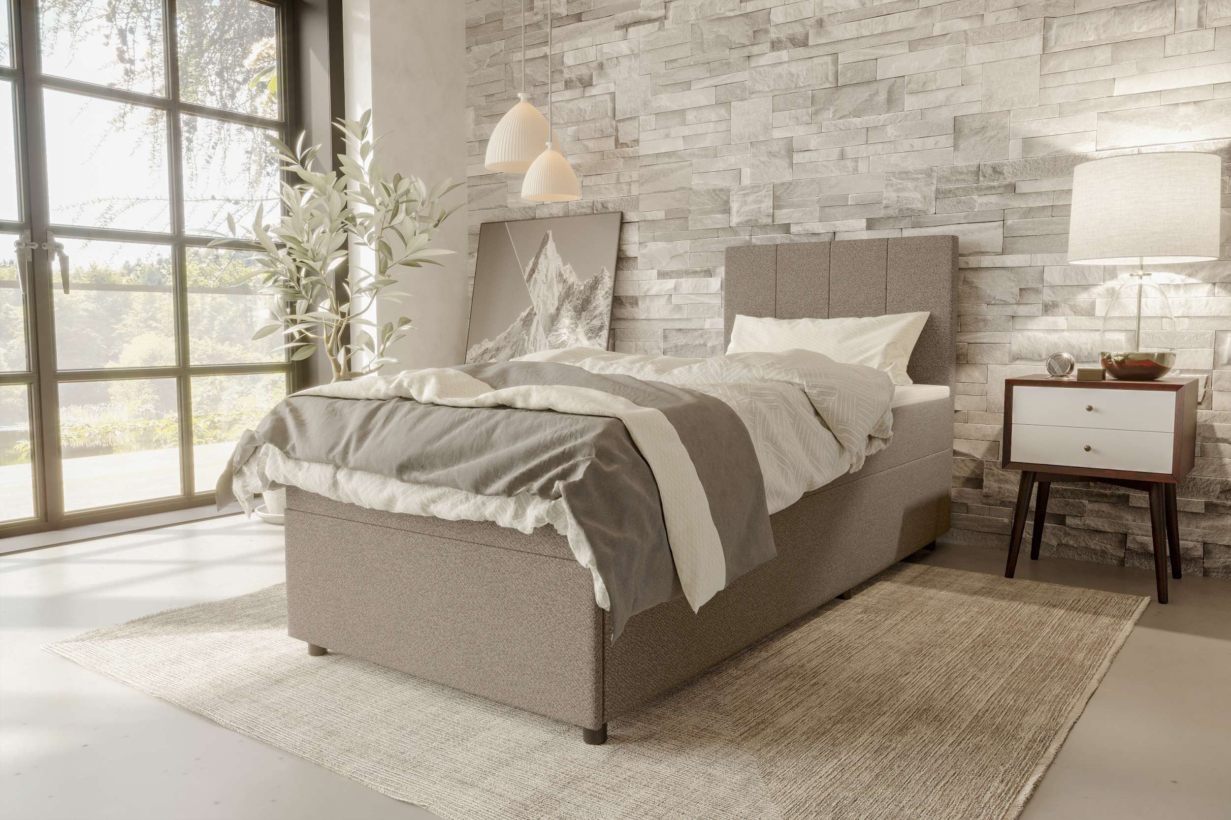 | Details Kopfteil | Gepolstertes Kopfteil mit vertikalen Ziernähten |