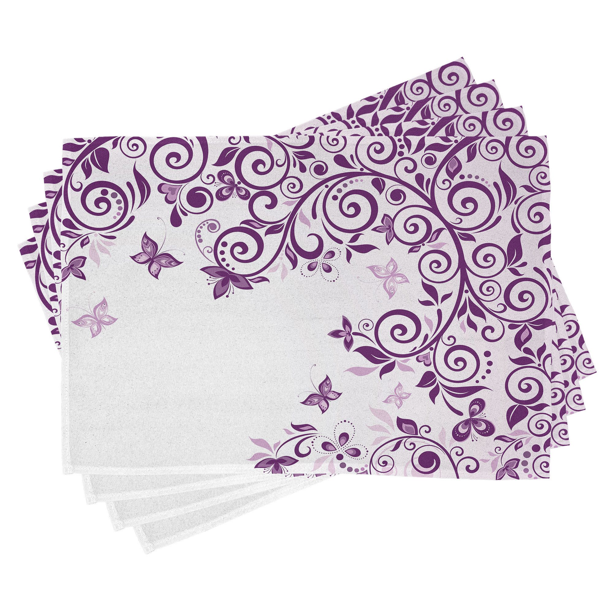 Ein vierteiliges Tischmattenset, je 30 cm lang und 45 cm breit. Mit handgenähten Kanten.