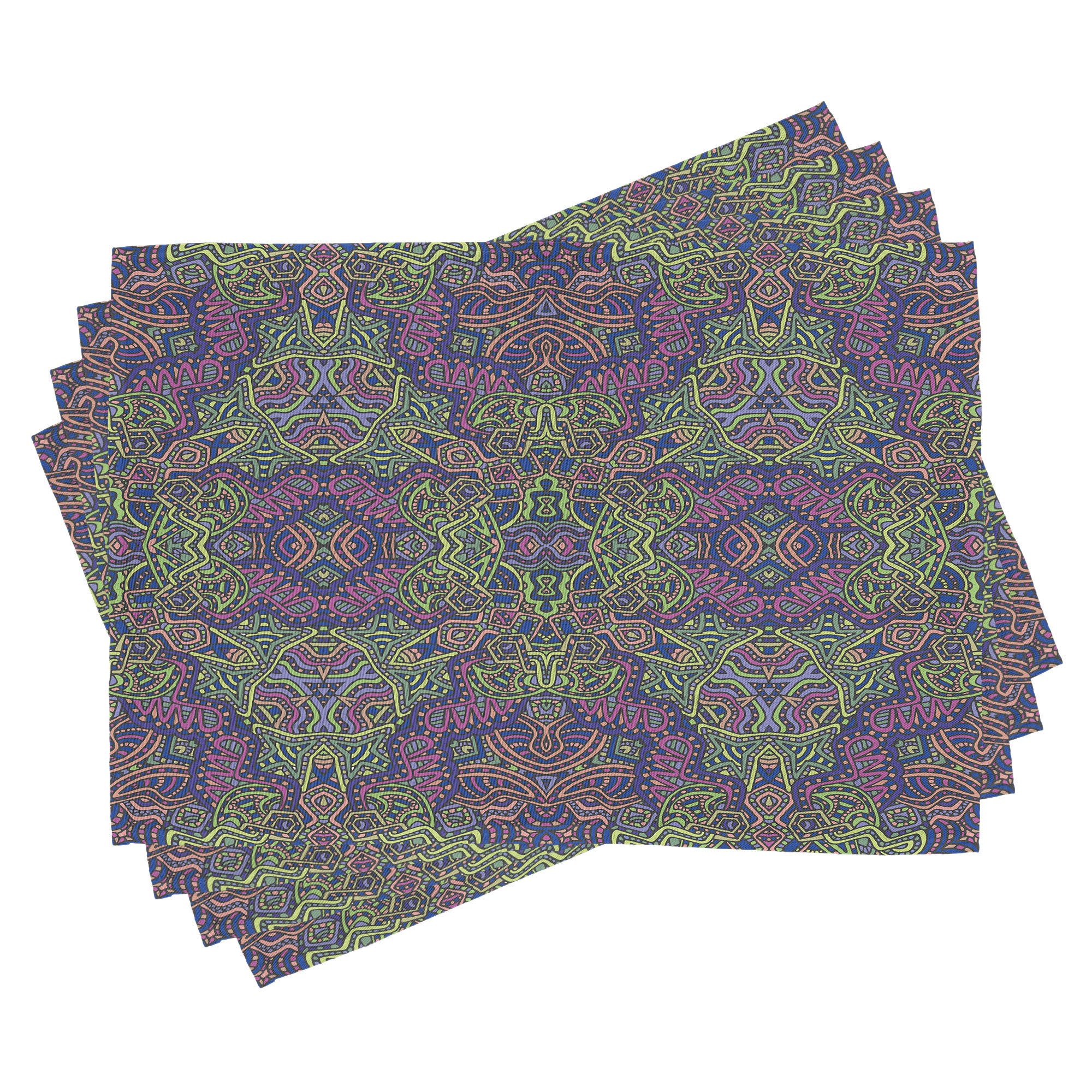 Ein vierteiliges Tischmattenset, je 30 cm lang und 45 cm breit. Mit handgenähten Kanten.