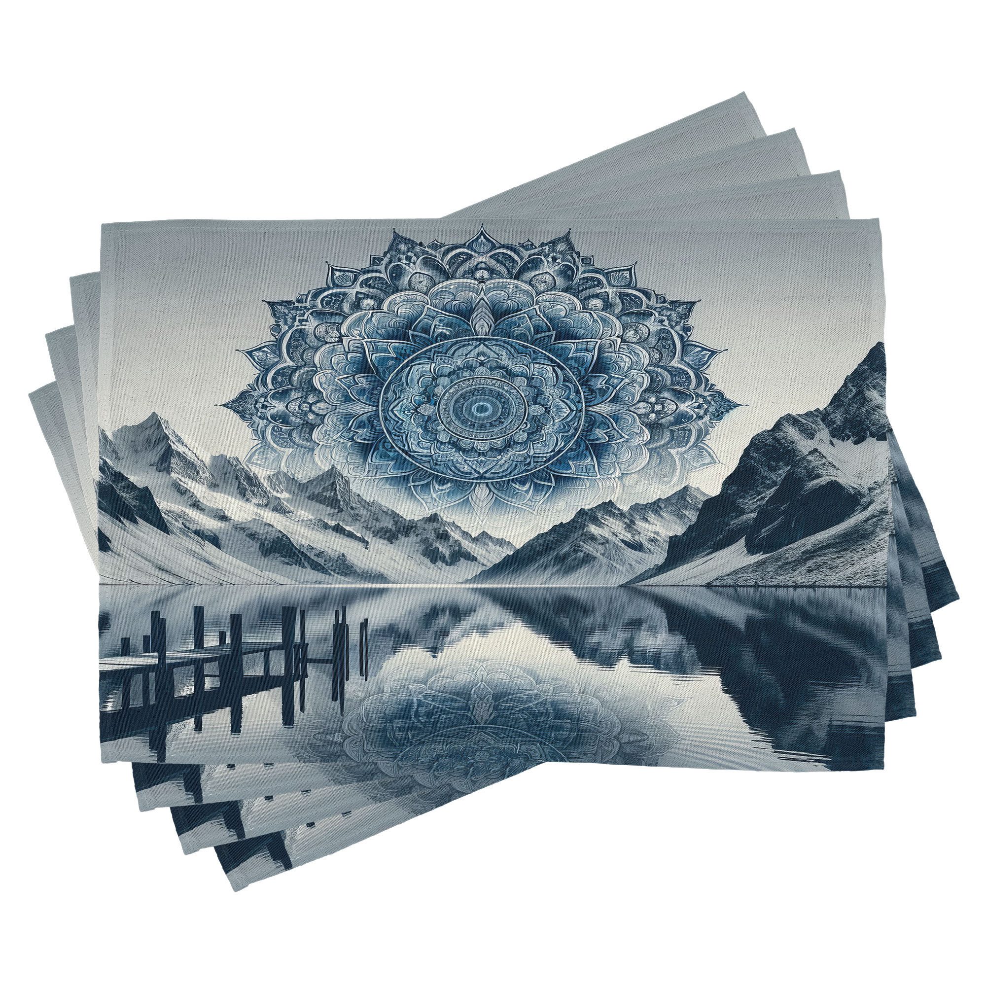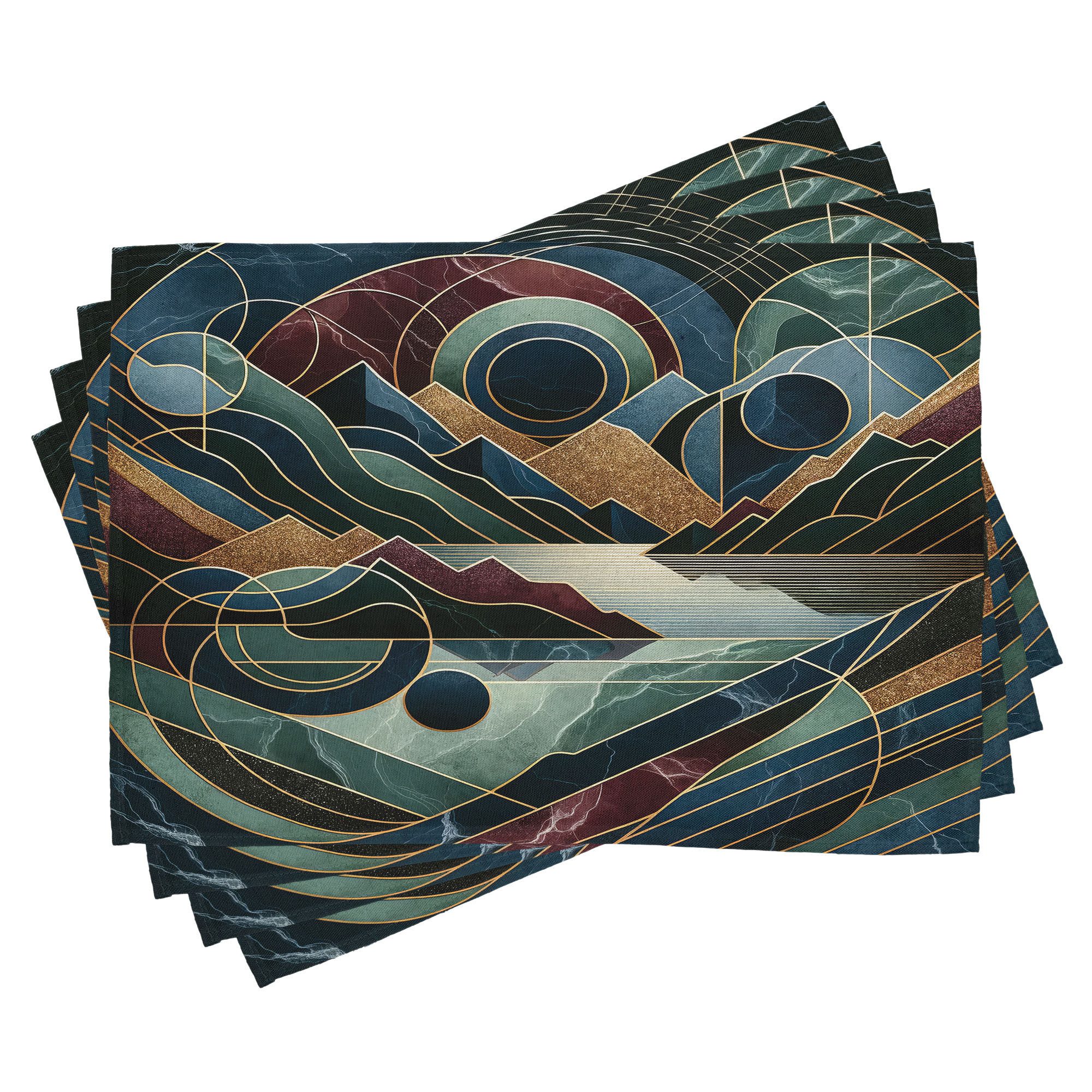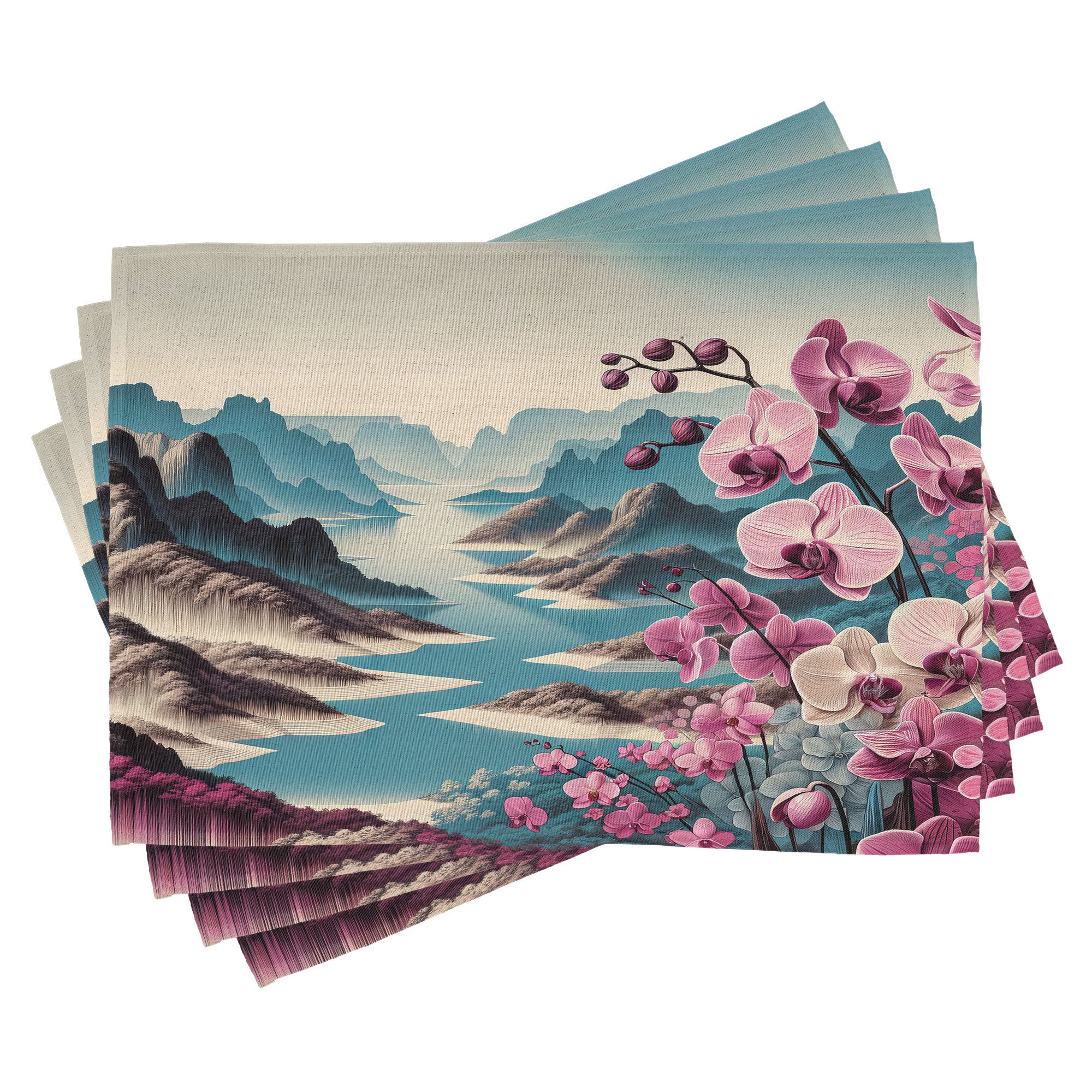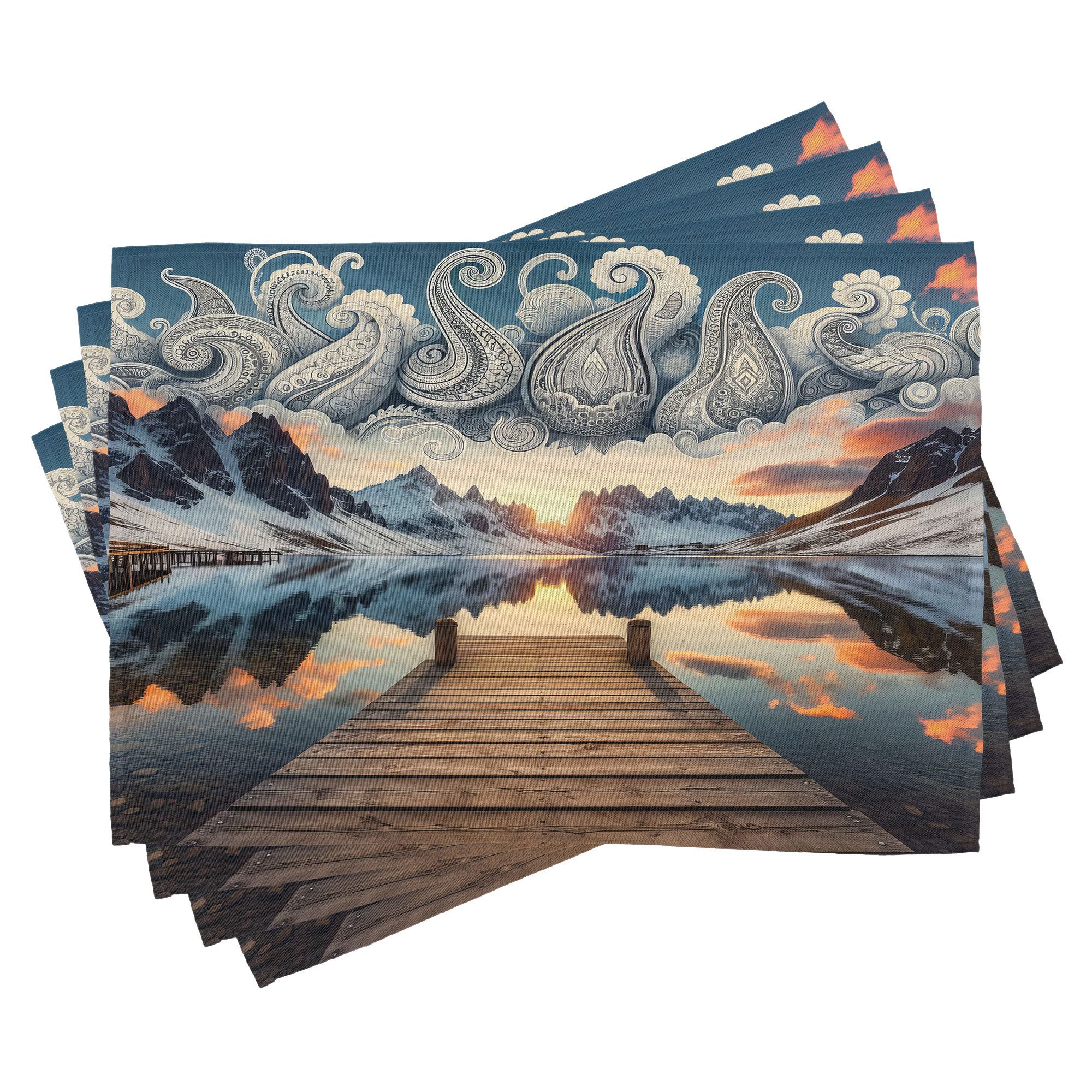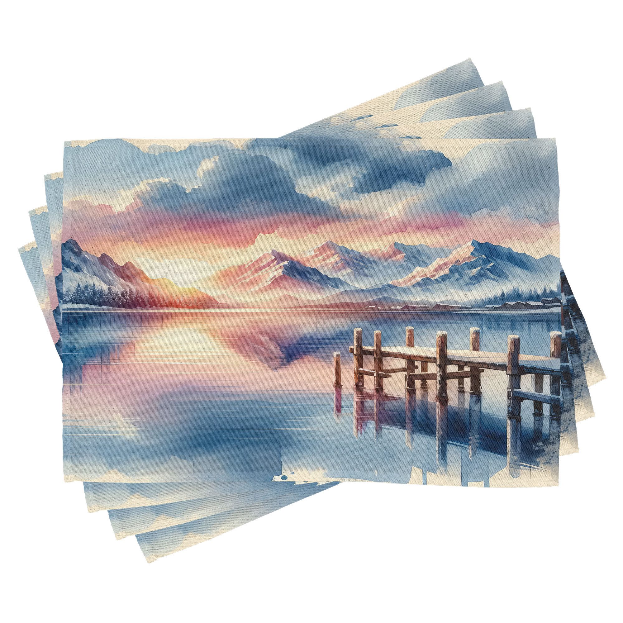 Ein vierteiliges Tischmattenset, je 30 cm lang und 45 cm breit. Mit handgenähten Kanten.