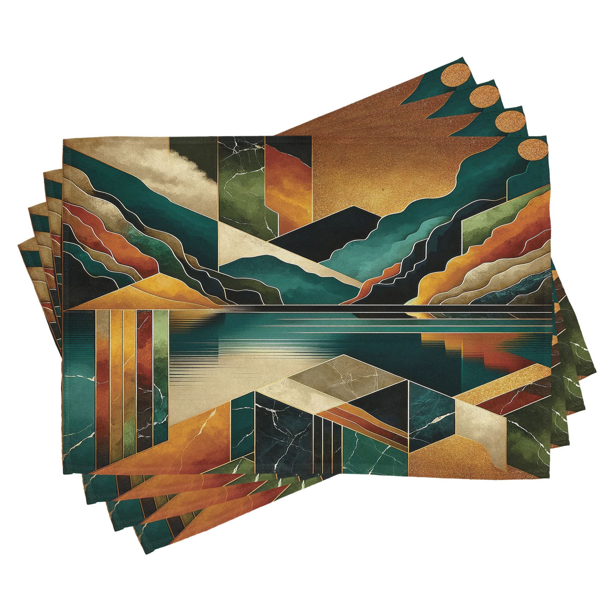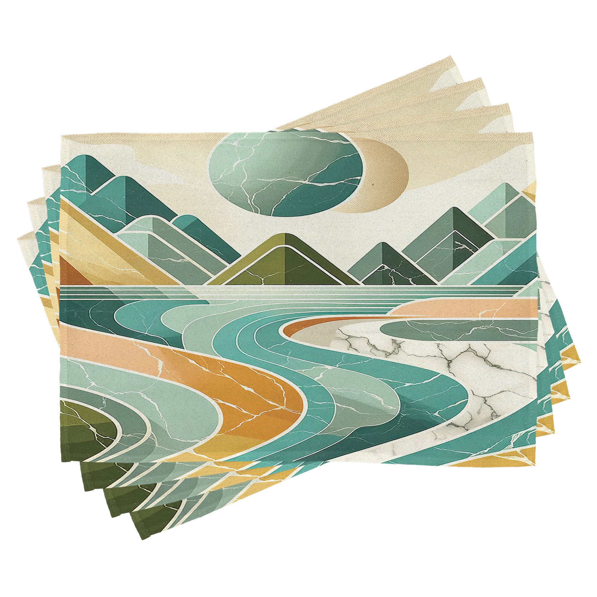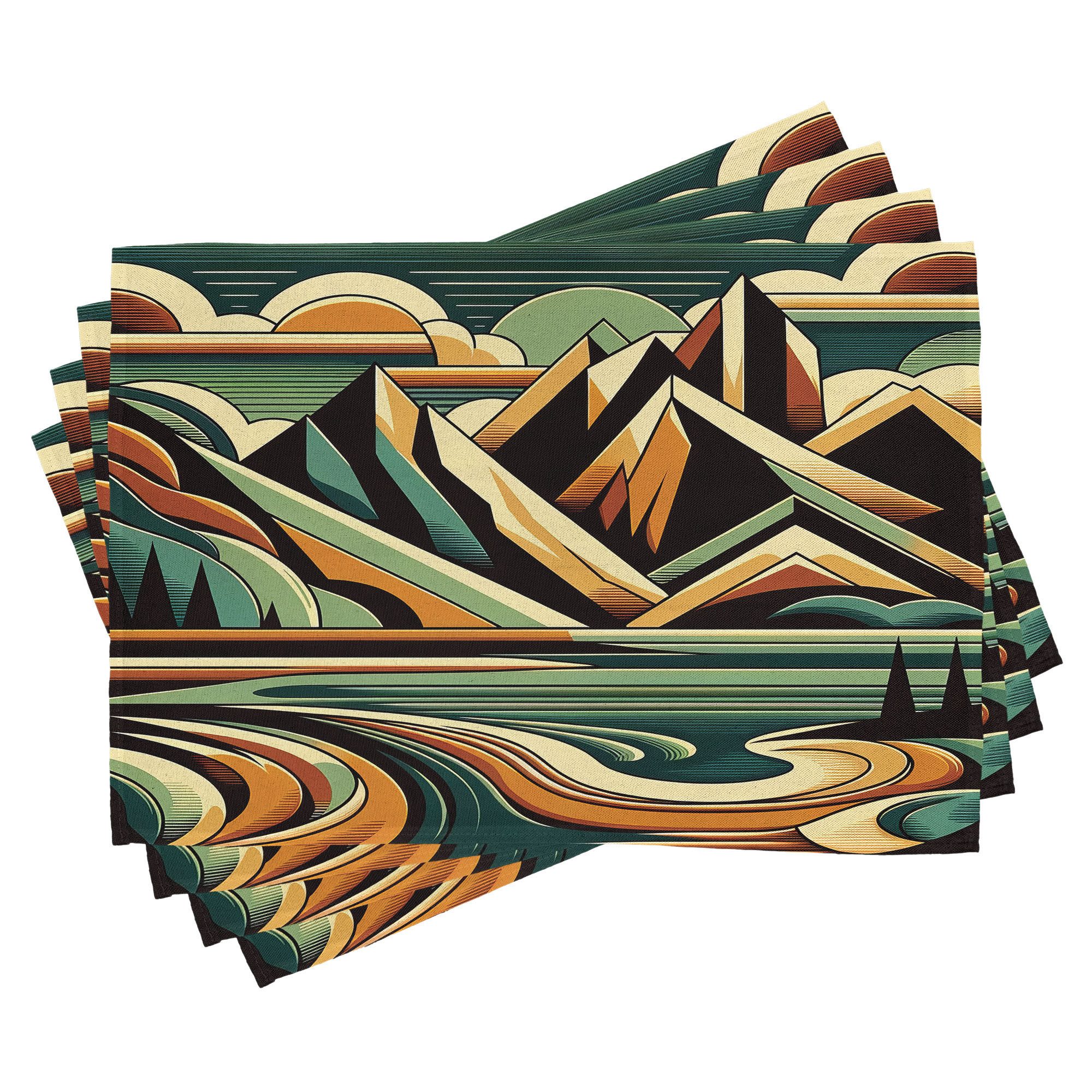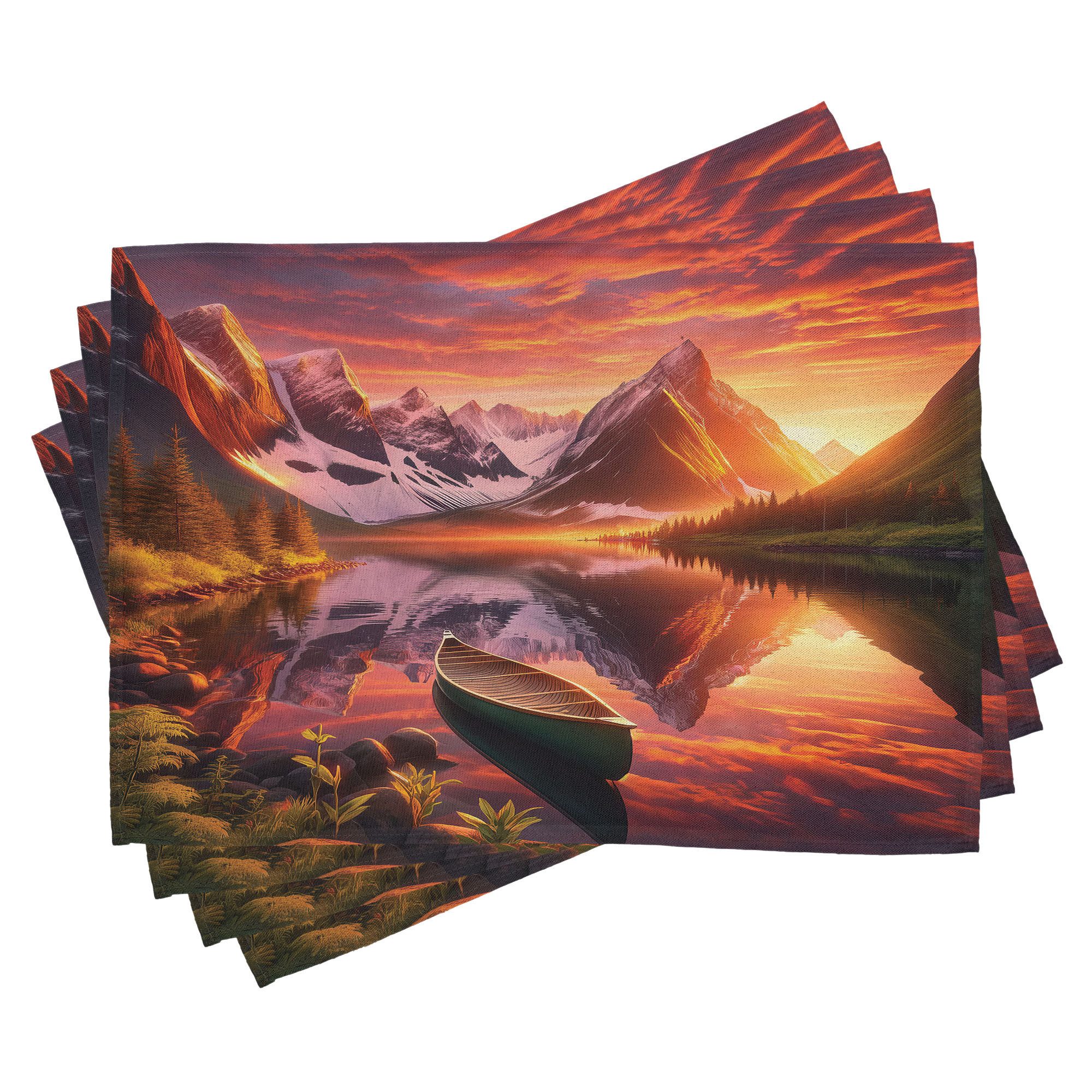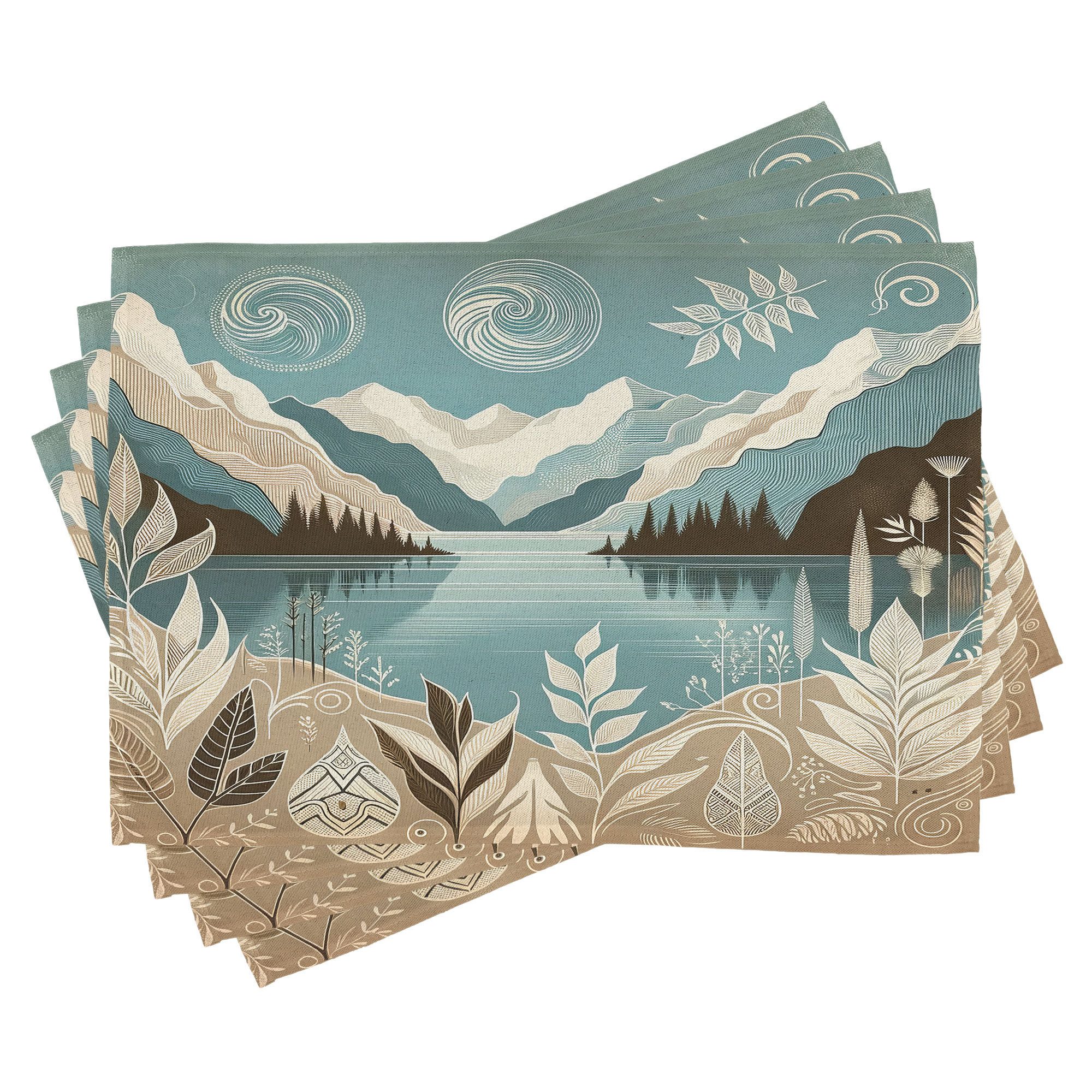Ein vierteiliges Tischmattenset, je 30 cm lang und 45 cm breit. Mit handgenähten Kanten.