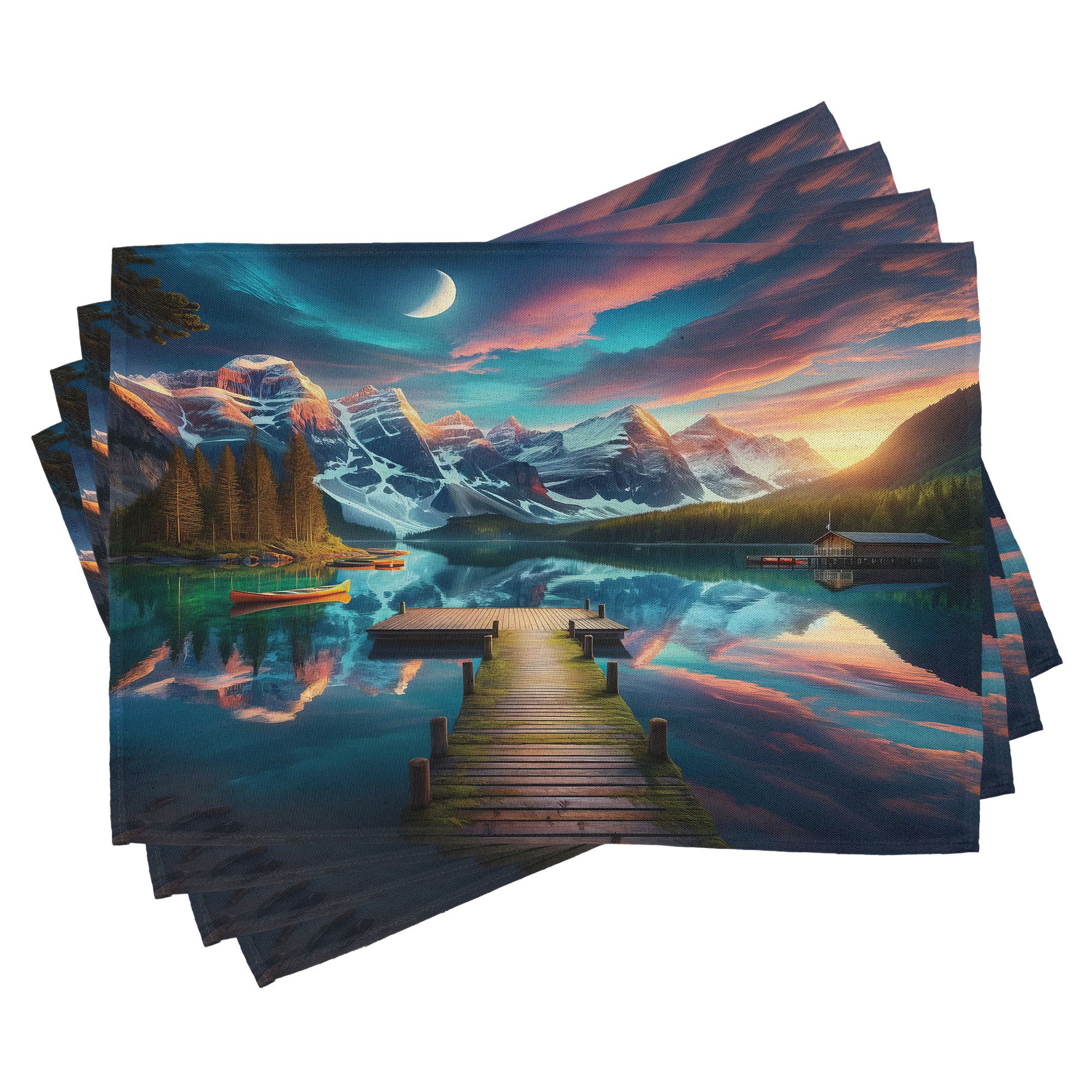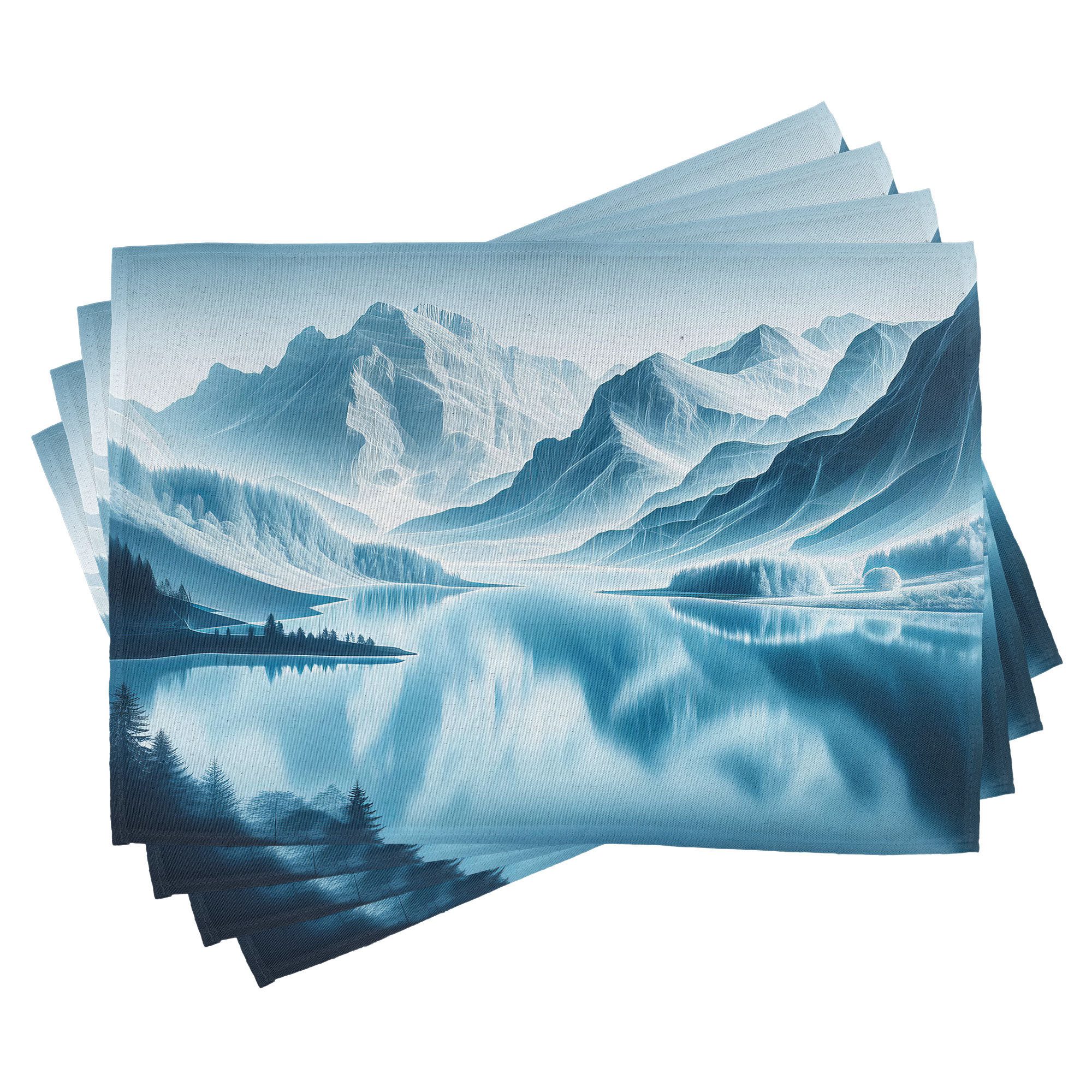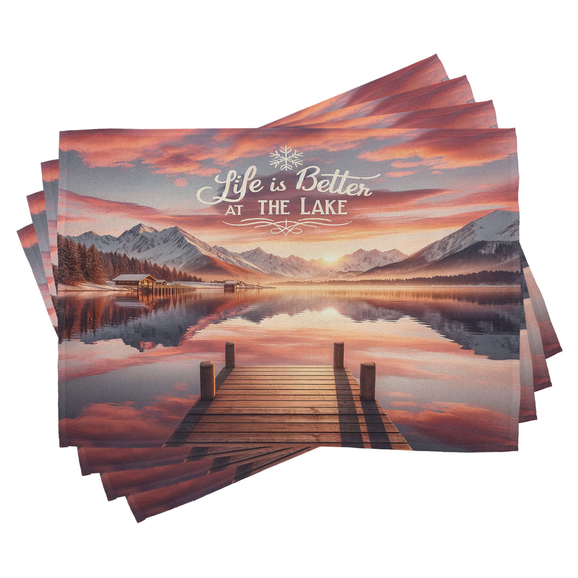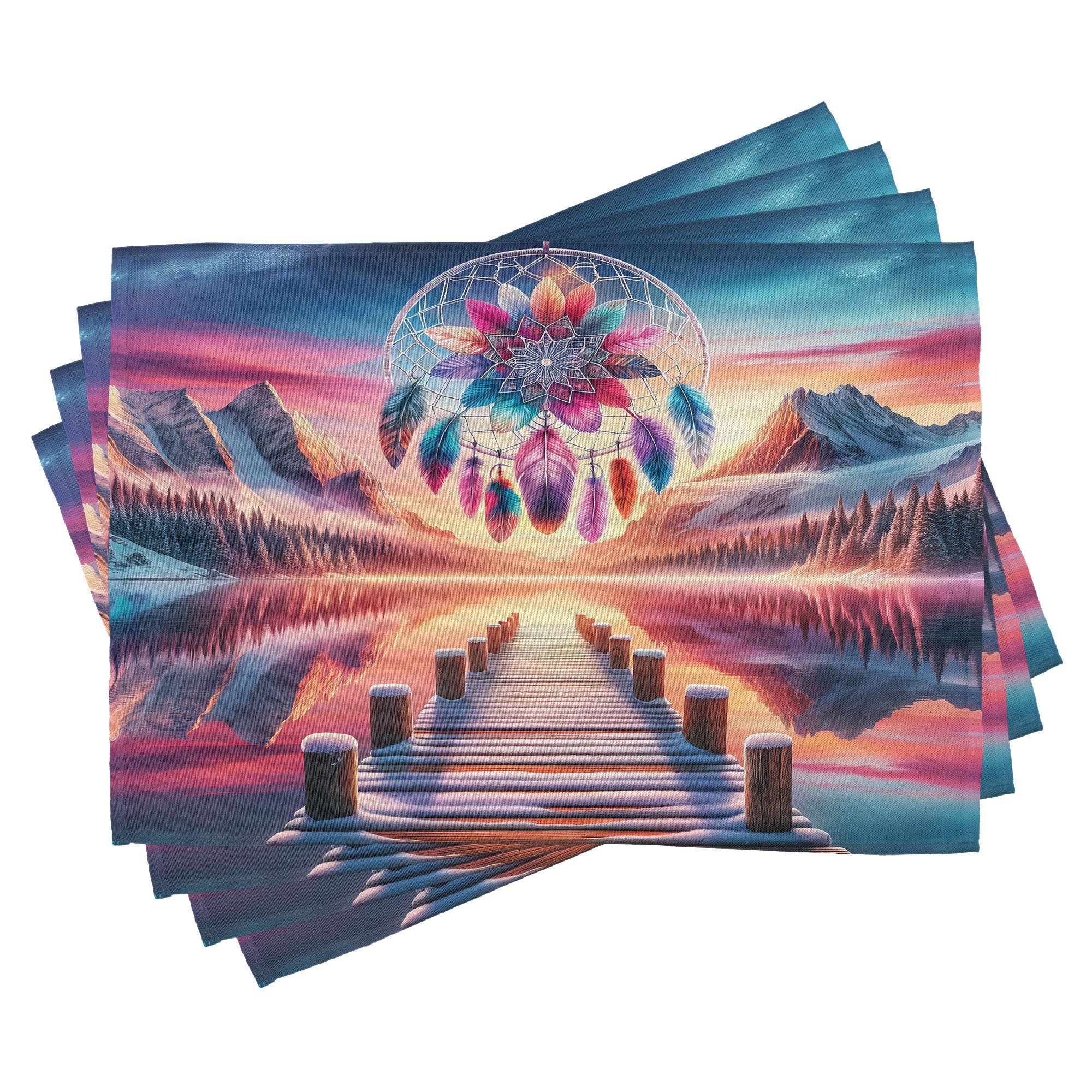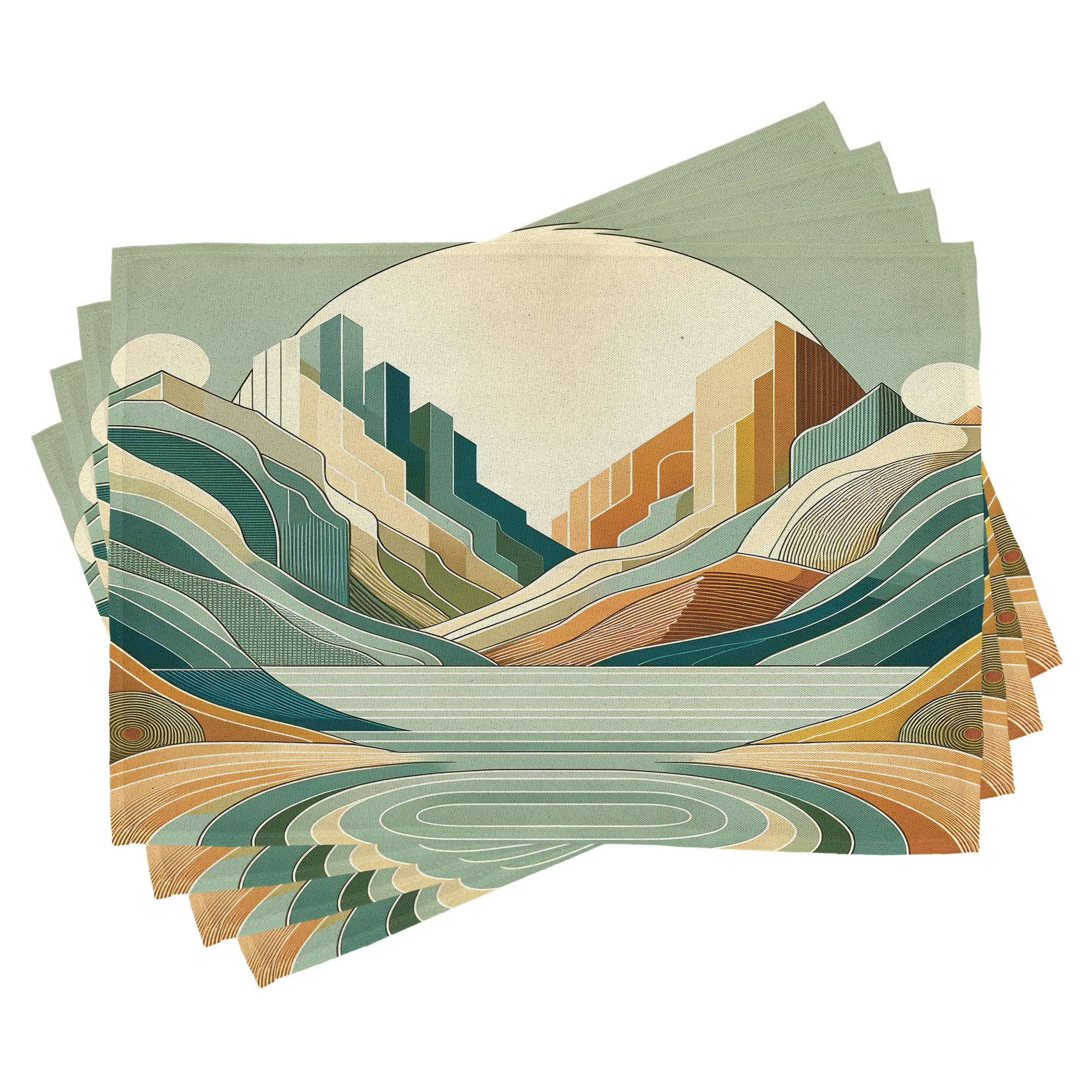 Ein vierteiliges Tischmattenset, je 30 cm lang und 45 cm breit. Mit handgenähten Kanten.