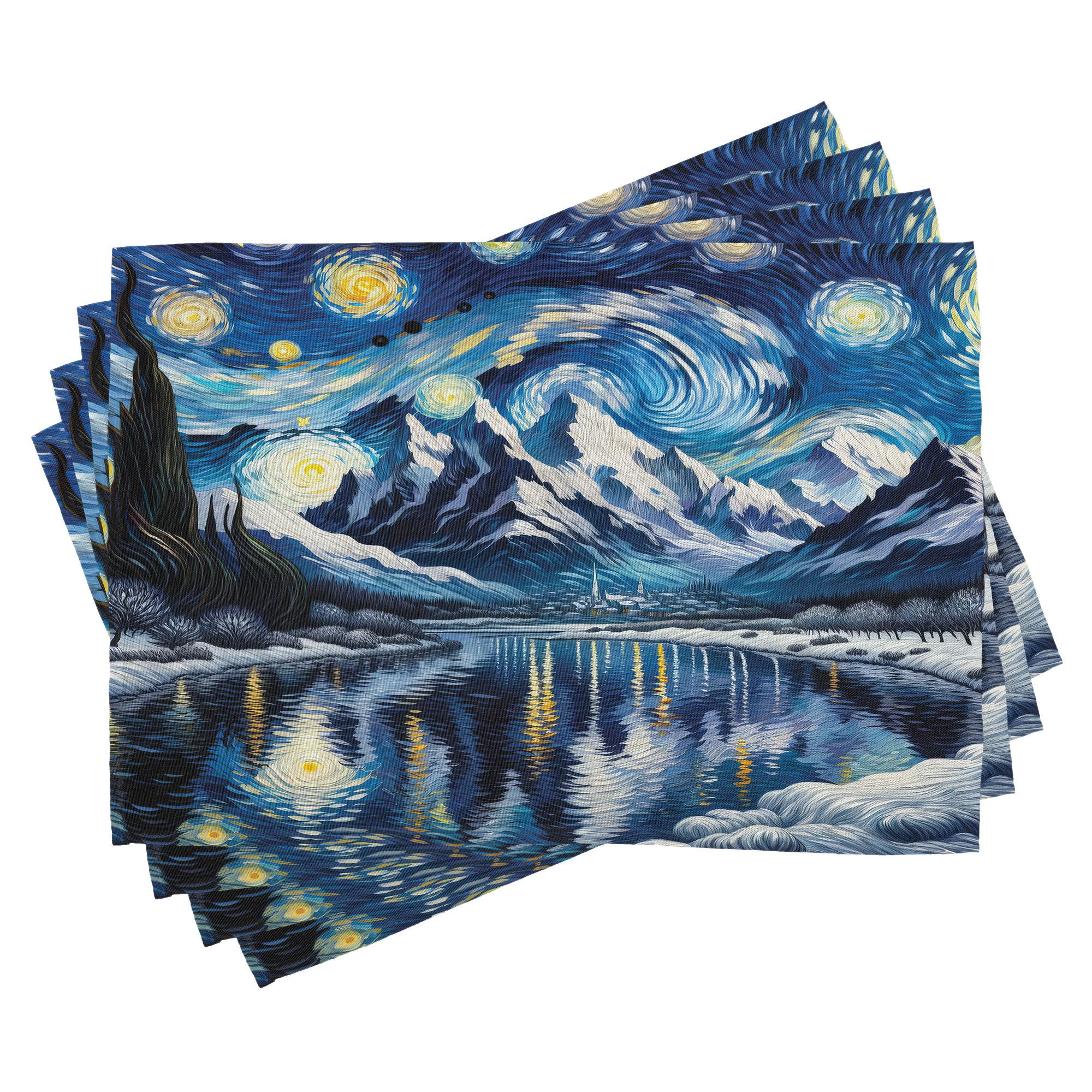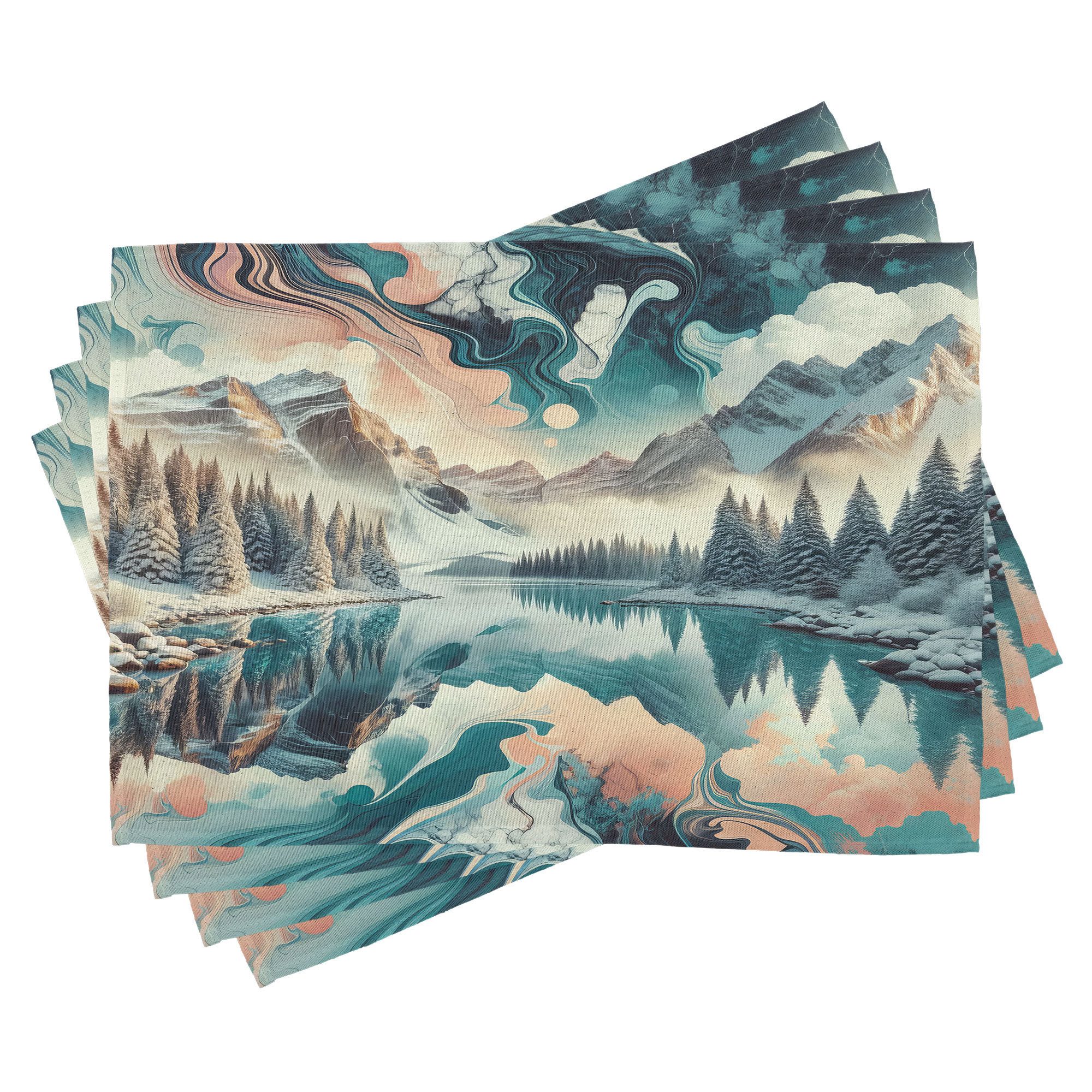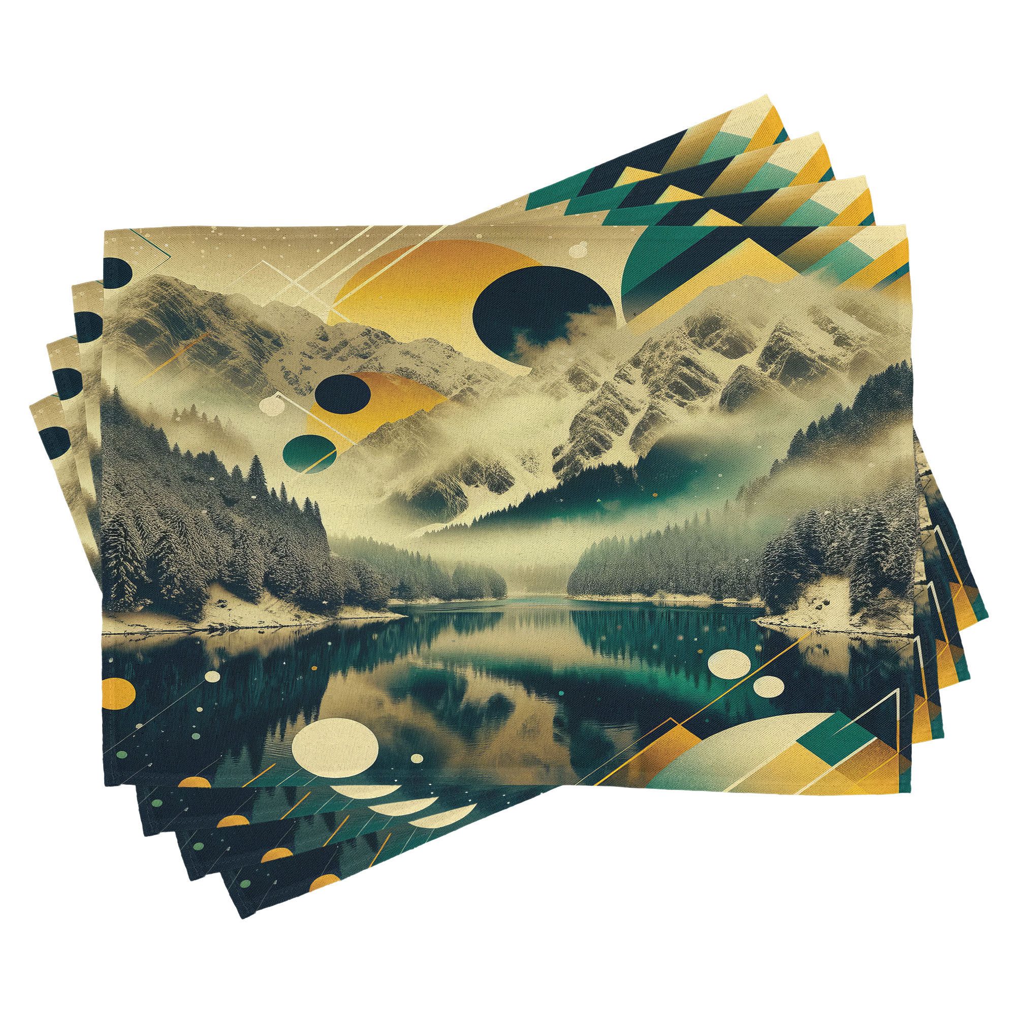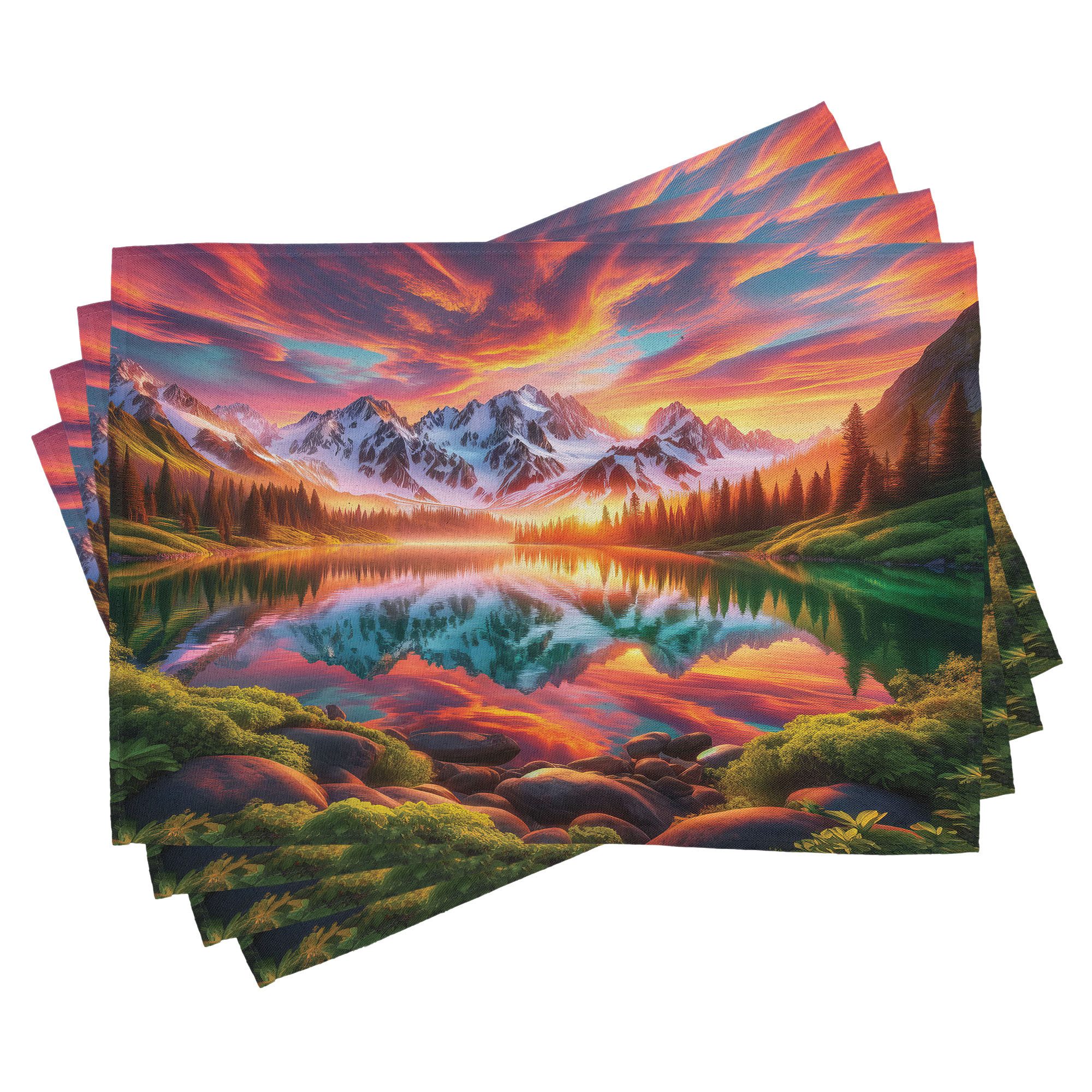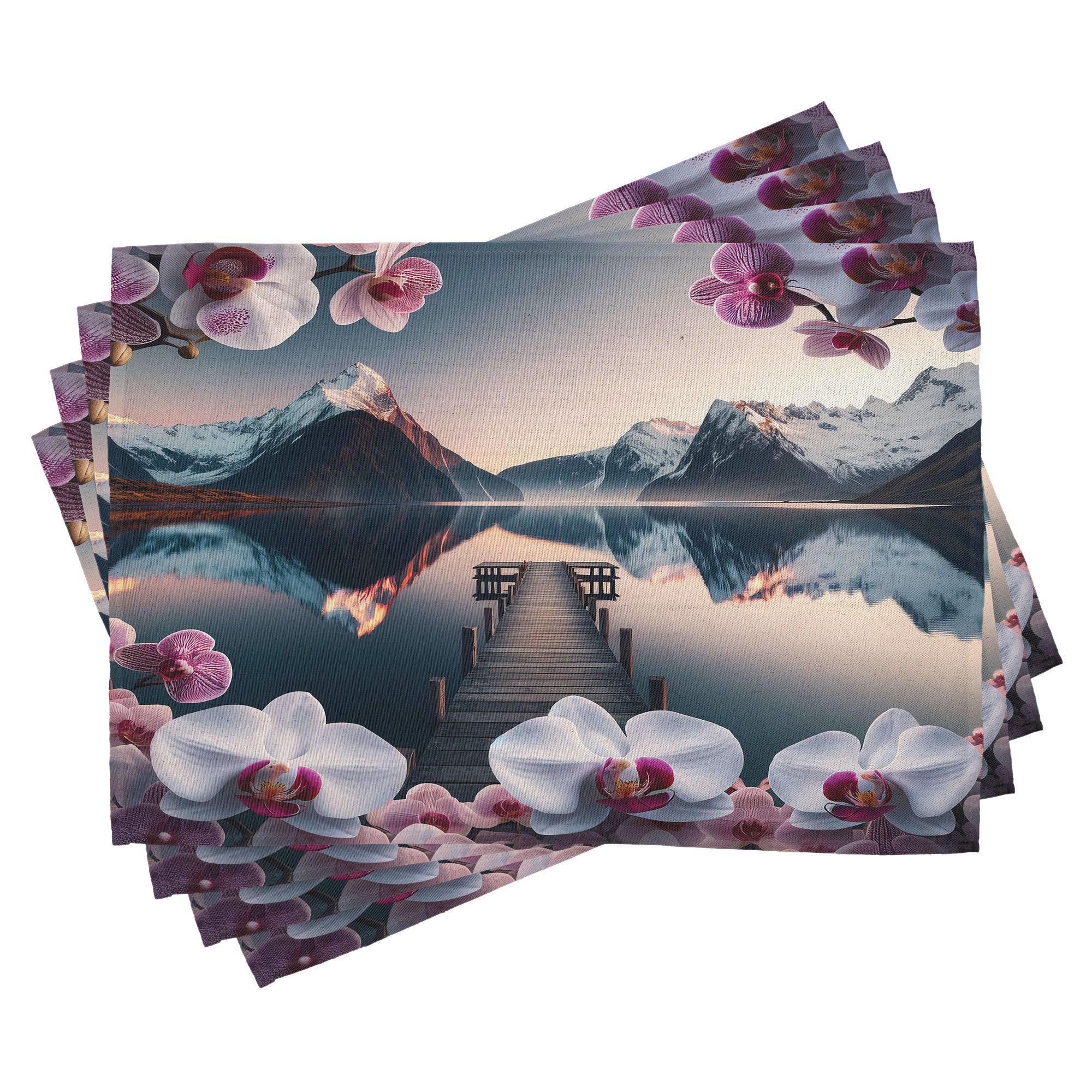 Ein vierteiliges Tischmattenset, je 30 cm lang und 45 cm breit. Mit handgenähten Kanten.