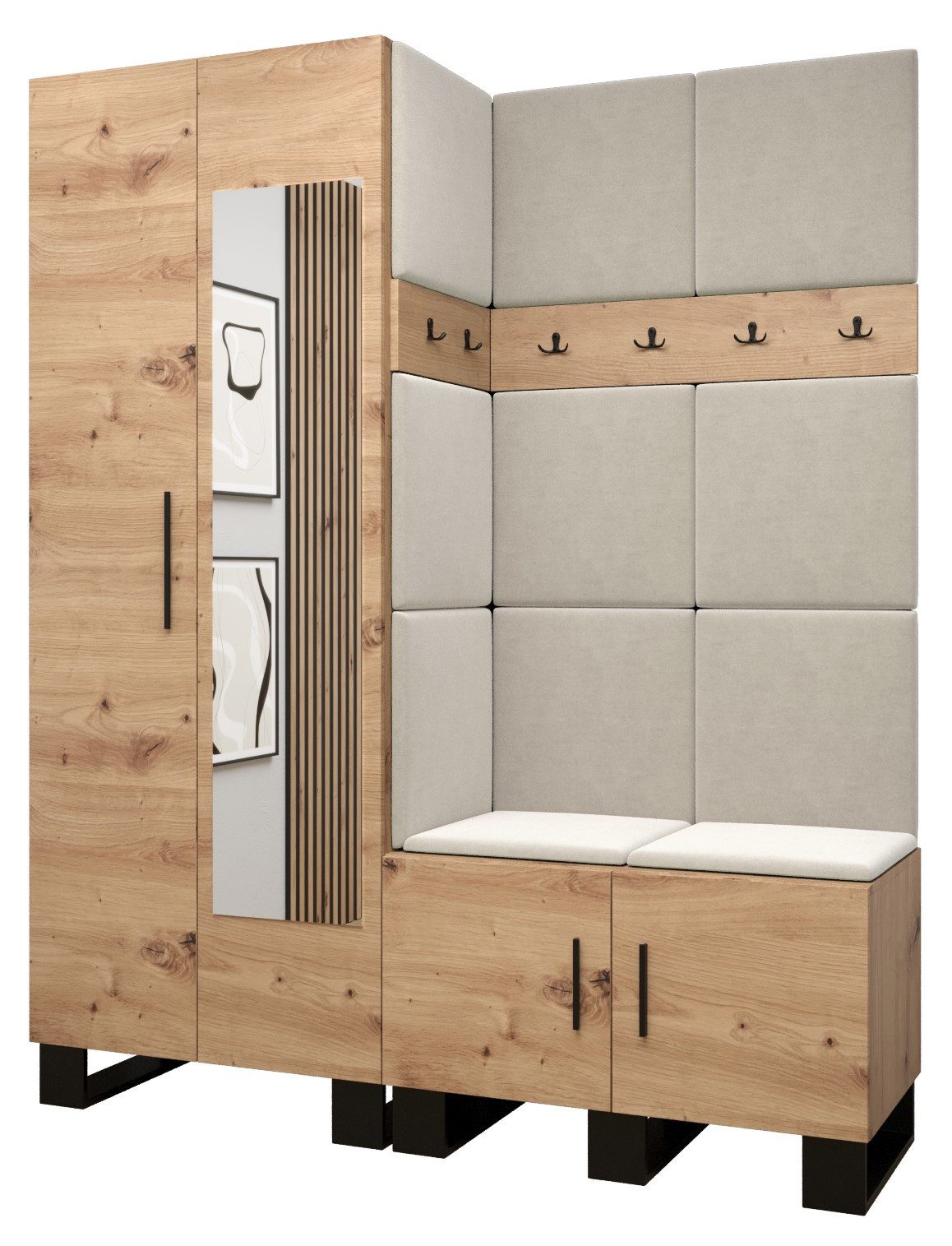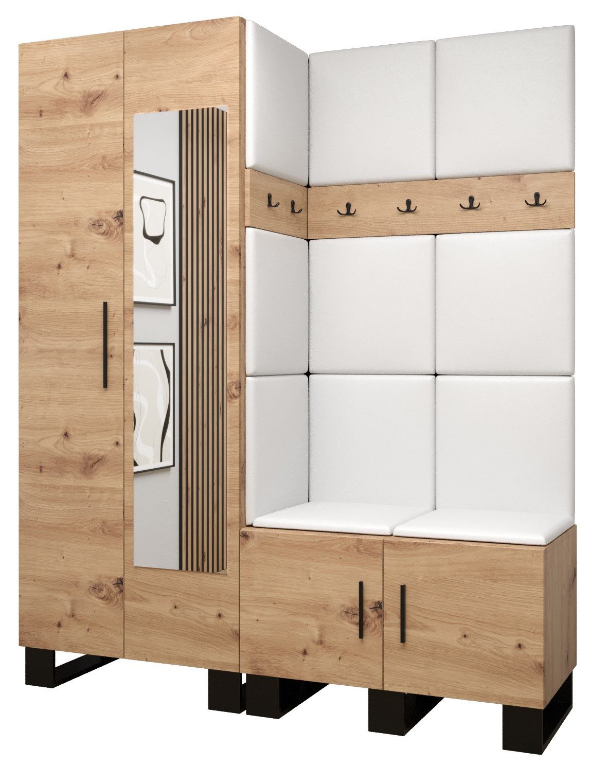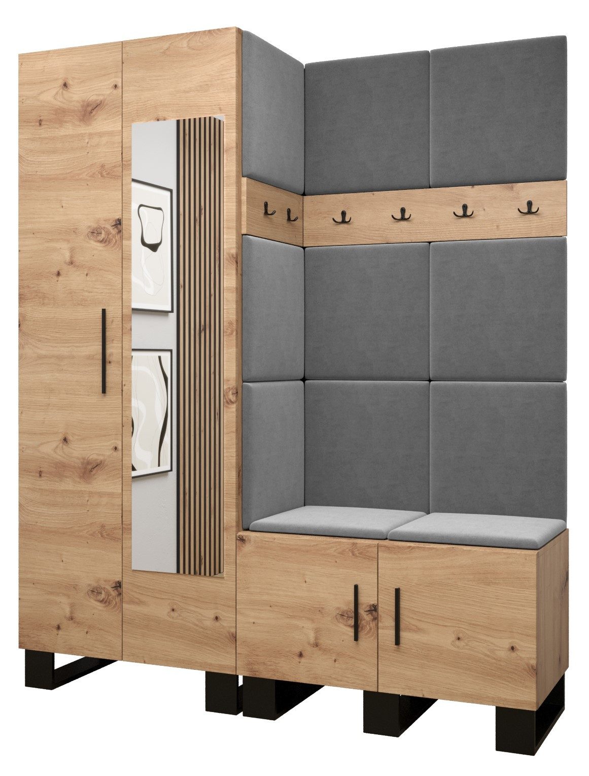 Viel Platz: Der ARTIN-Garderobe ist ein Möbelstück im modernen Stil mit modischen Polsterpaneelen, eine große Anzahl von Regalen und Kleiderbügeln verleihen dem Kleiderschrank außergewöhnliche Funktionalität. Elegantes Design und eine große Auswahl an Paneelfarben ermöglichen es Ihnen, die Garderobe in Ihrem Flur frei zu gestalten!
