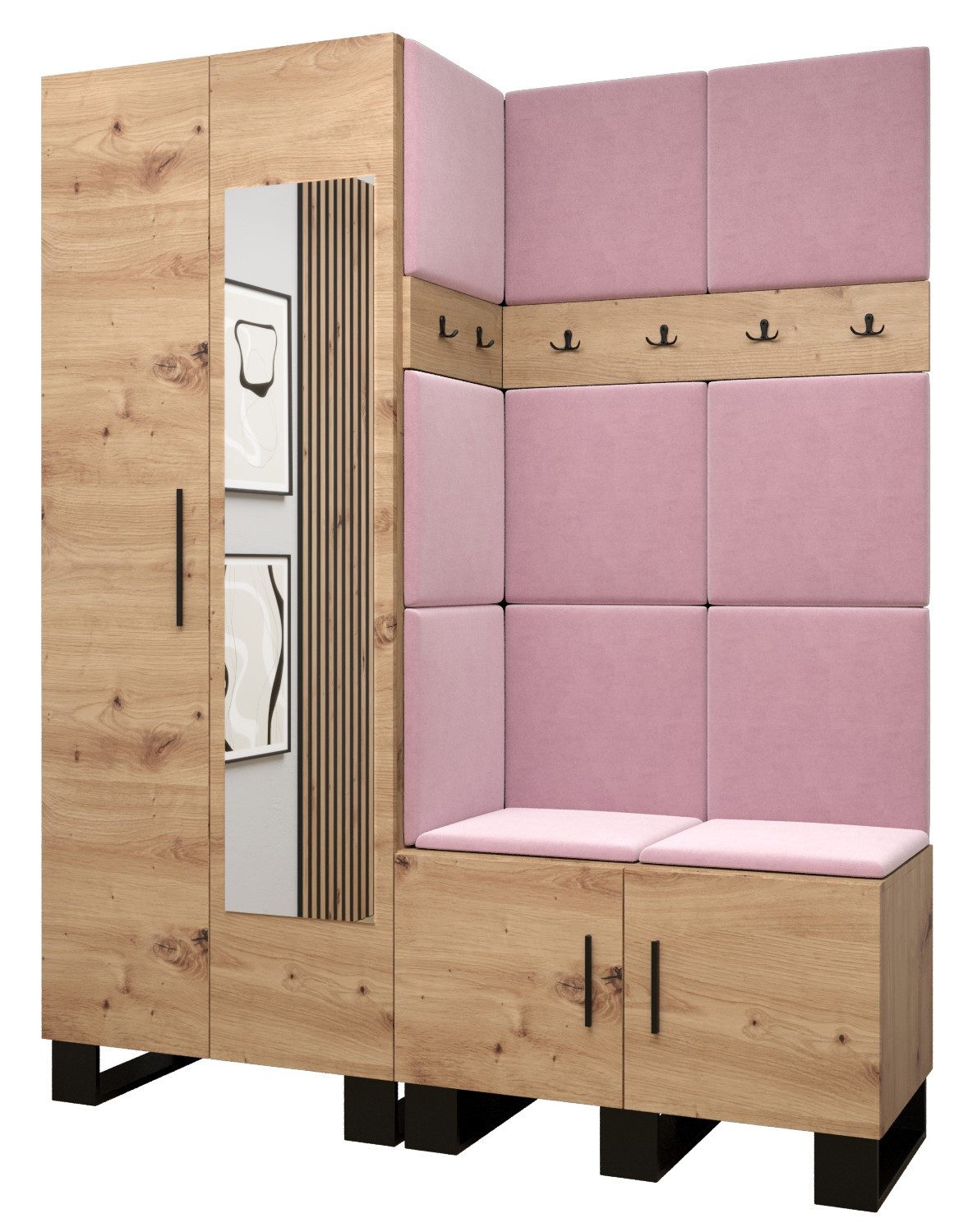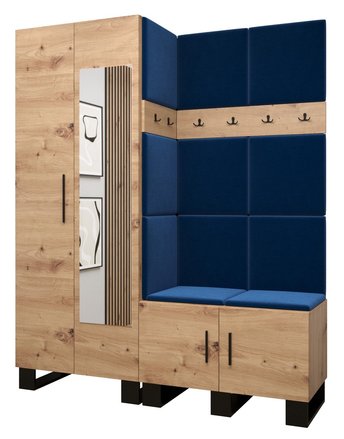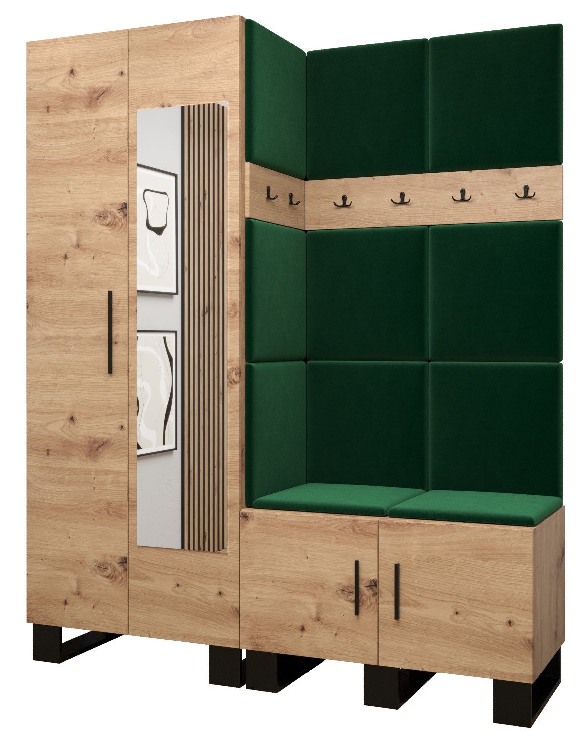 Viel Platz: Der ARTIN-Garderobe ist ein Möbelstück im modernen Stil mit modischen Polsterpaneelen, eine große Anzahl von Regalen und Kleiderbügeln verleihen dem Kleiderschrank außergewöhnliche Funktionalität. Elegantes Design und eine große Auswahl an Paneelfarben ermöglichen es Ihnen, die Garderobe in Ihrem Flur frei zu gestalten!