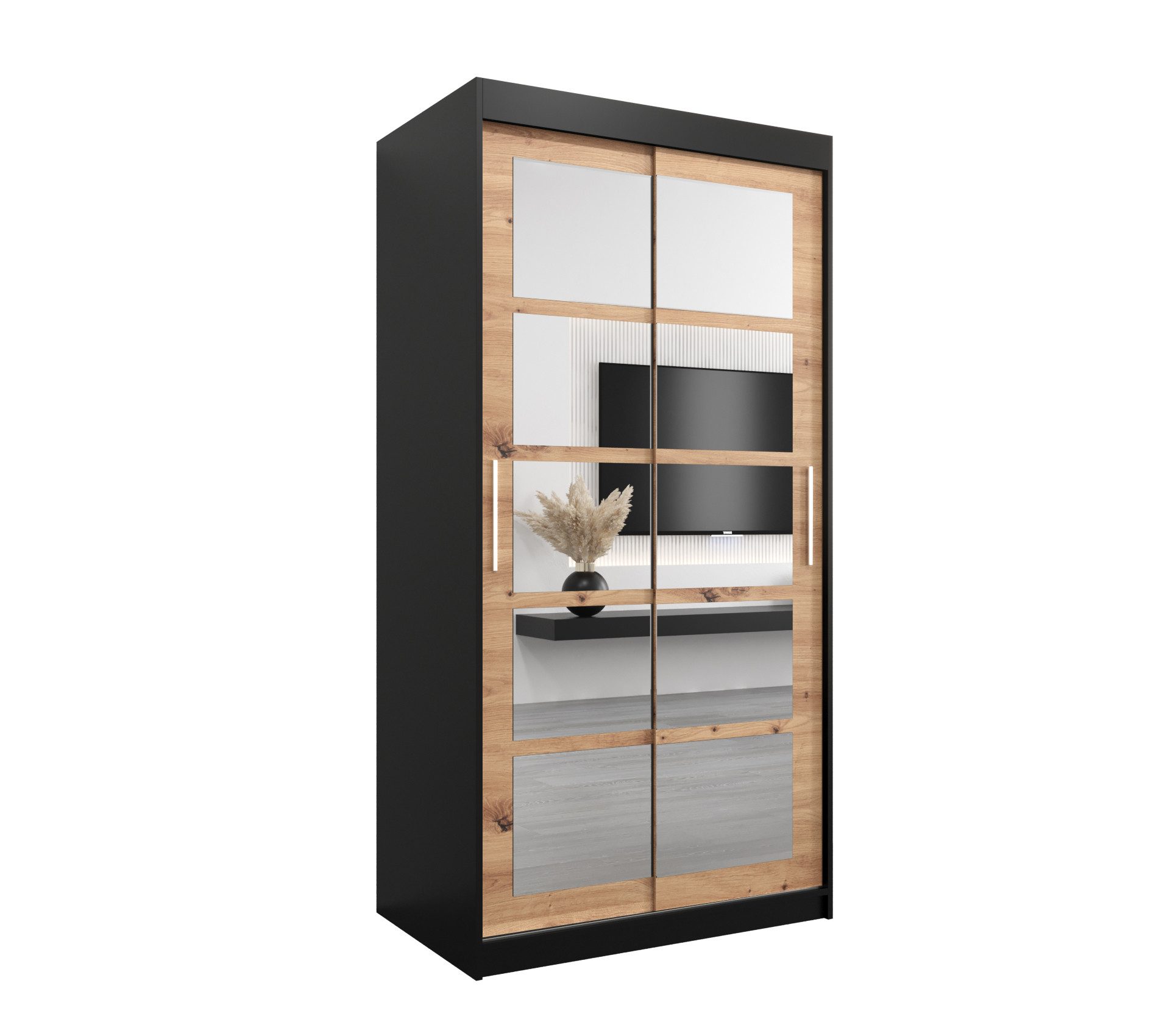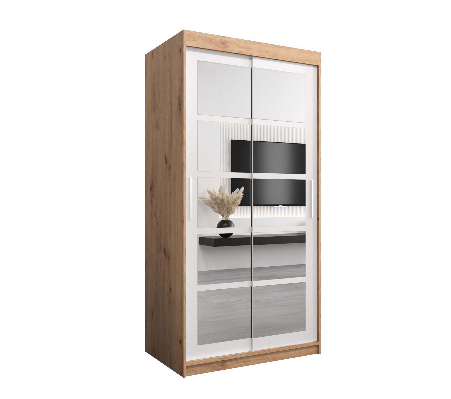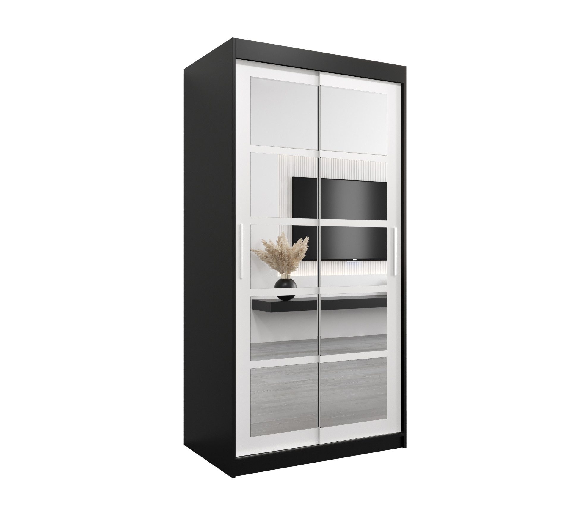 Modernes Design: Der Kleiderschrank wurde in einem modernen Stil gestaltet, wodurch er in nahezu jede Wohnung passt. Eine große Farbpalette ermöglicht es Ihnen, die Möbel an Ihre Inneneinrichtung anzupassen. Es ist eine ausgezeichnete Lösung für kleine Räume.