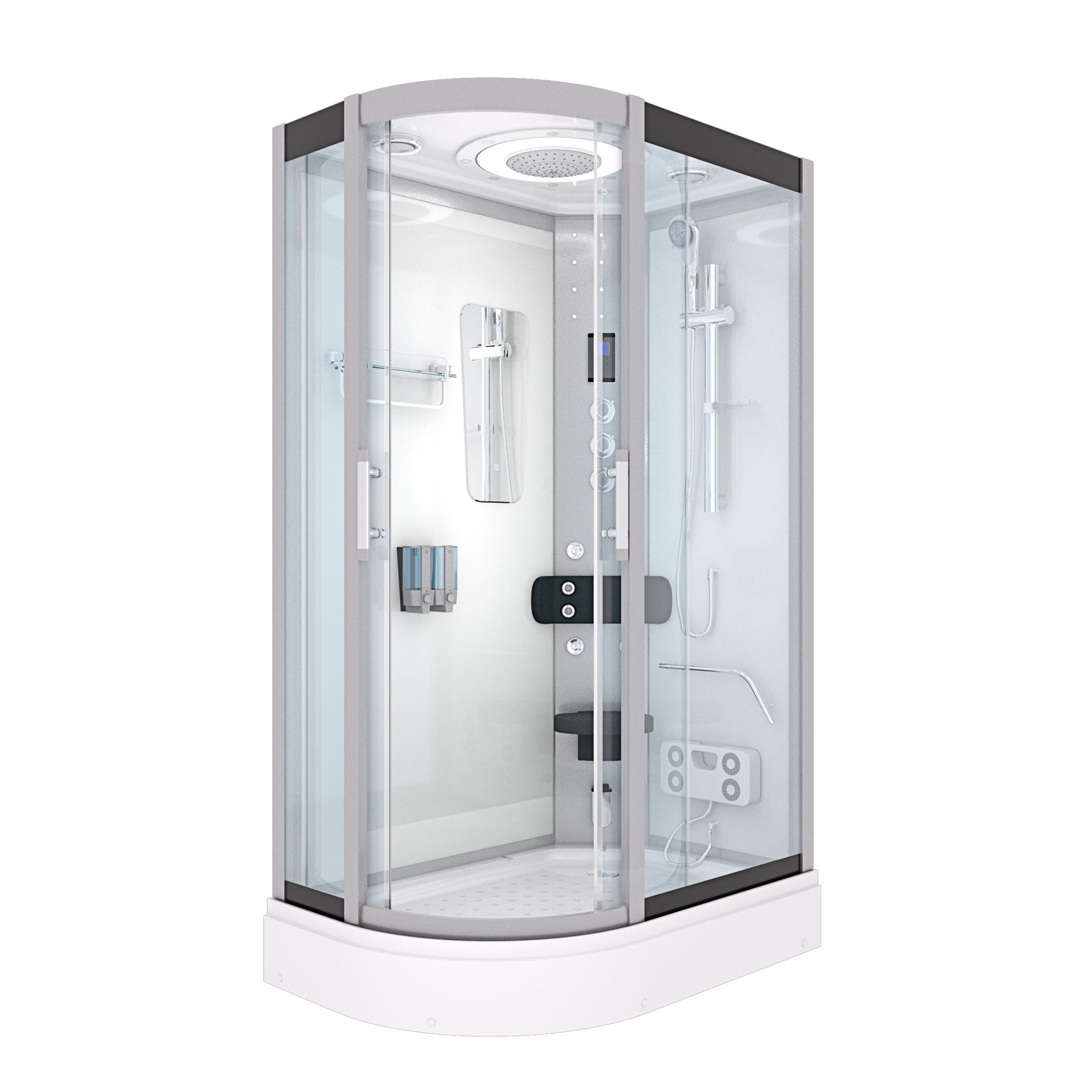 | Ausstattung | höhenverstellbare Füße,Regendusche,Handbrause,Dampfgenerator 3000Watt,Ozon-Reinigung,Beleuchtung |