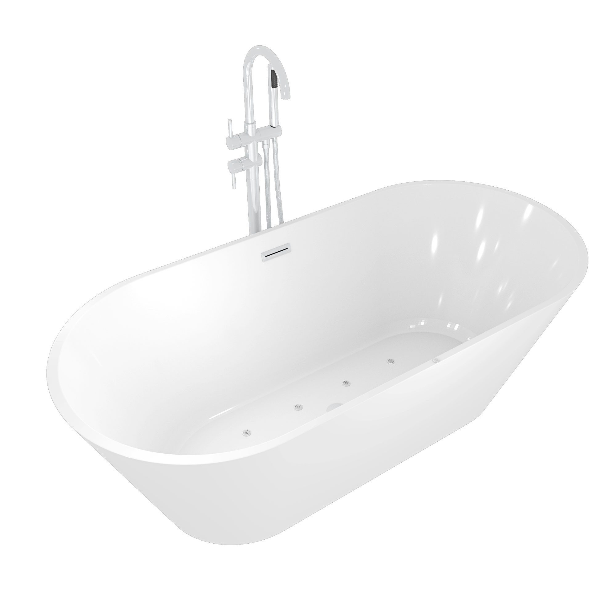 Die Wanne bietet mit ihrer Größe von 170x80x58cm und ihrer ergonomischen Form den idealen Platz zur Entspannung. Dank der höhenverstellbaren Füße der Wanne, kann man diese nahezu an jedem Ort aufstellen. Die rundherum / allseitig geschlossene Wanne kann völlig frei im Raum aufgestellt werden.