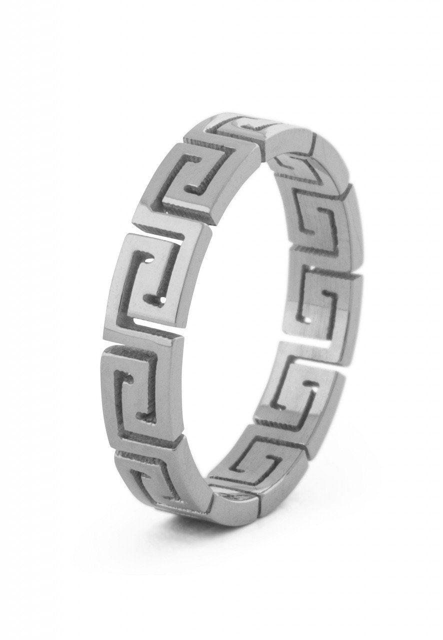 Ring für Männer und Frauen mit griechischer Mäander-Ornament Optik • aus Edelstahl • silber beschichtet