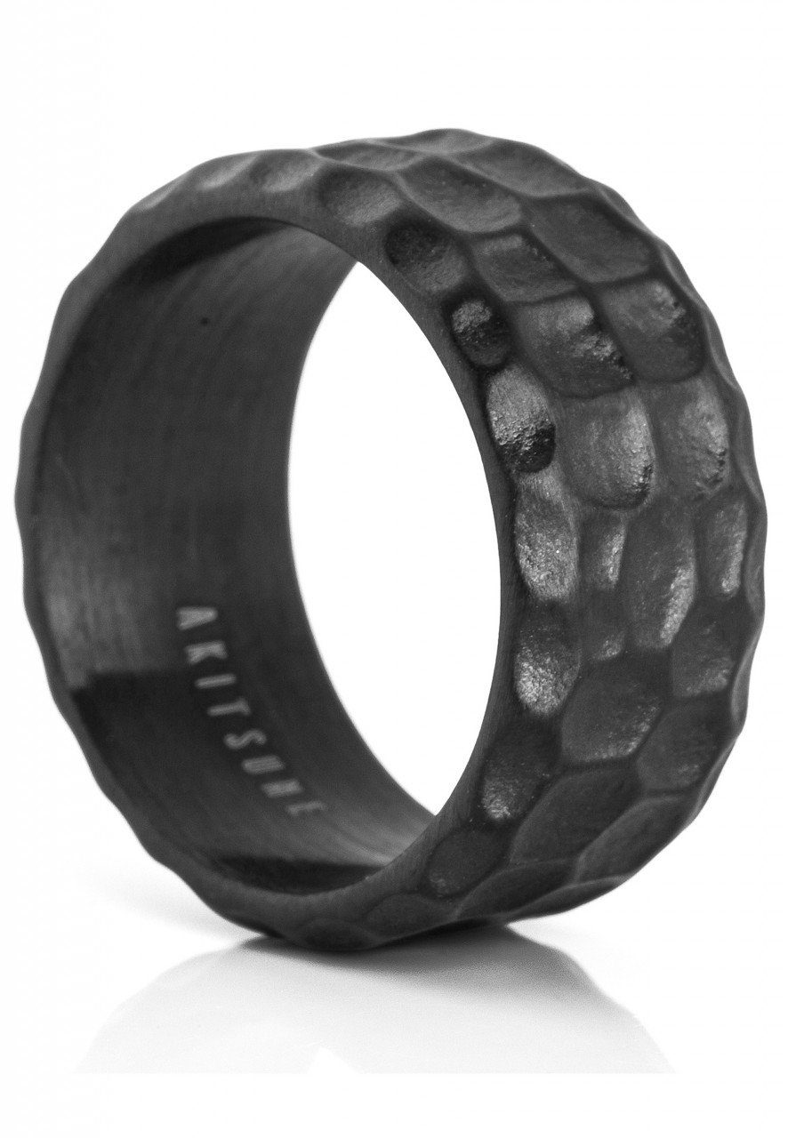 Dieser gehämmerte Stahlbandring ist ein Tribute an die Erde, auf der wir stehen, und an ihren fruchtbaren Boden. • Edelstahl • Farbe: Mattschwarz