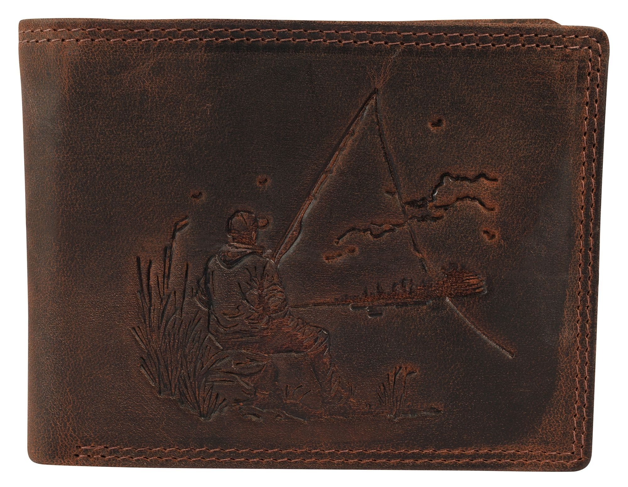 Die Geldbörse der Marke Akzent wurde im Querformat aus Echtleder hergestellt und zeigt sich durch die Prägung in Form eines Anglers im unverkennbarem Design. Die Geldbörse ist ein wahres Platzwunder und bietet viel Stauraum für alle wichtigen Dokumente. Die Doppelnaht im Außen- und Innenbereich sorgt für eine gute Haltbarkeit und Stabilität. Durch die komfortable Einteilung verfügt sie über 6 Kreditkartenfächer, 2 Geldscheinfächer, 1 Münzfach mit Druckknopfverschluss, 1 Reißverschlussfach im inneren Bereich, 2 Einsteckfächer und 3 transparente Ausweisfächer und mittels eines extra Druckknopfverschluss im Innern werden die Karten sicher verwahrt. Die Größe ergibt sich ungefüllt aus einer Länge von 9,5 cm, einer Breite von 12 cm und einer Stärke von 2 cm. Ein tolles Accessoire mit optimaler Größe für den täglichen Gebrauch.