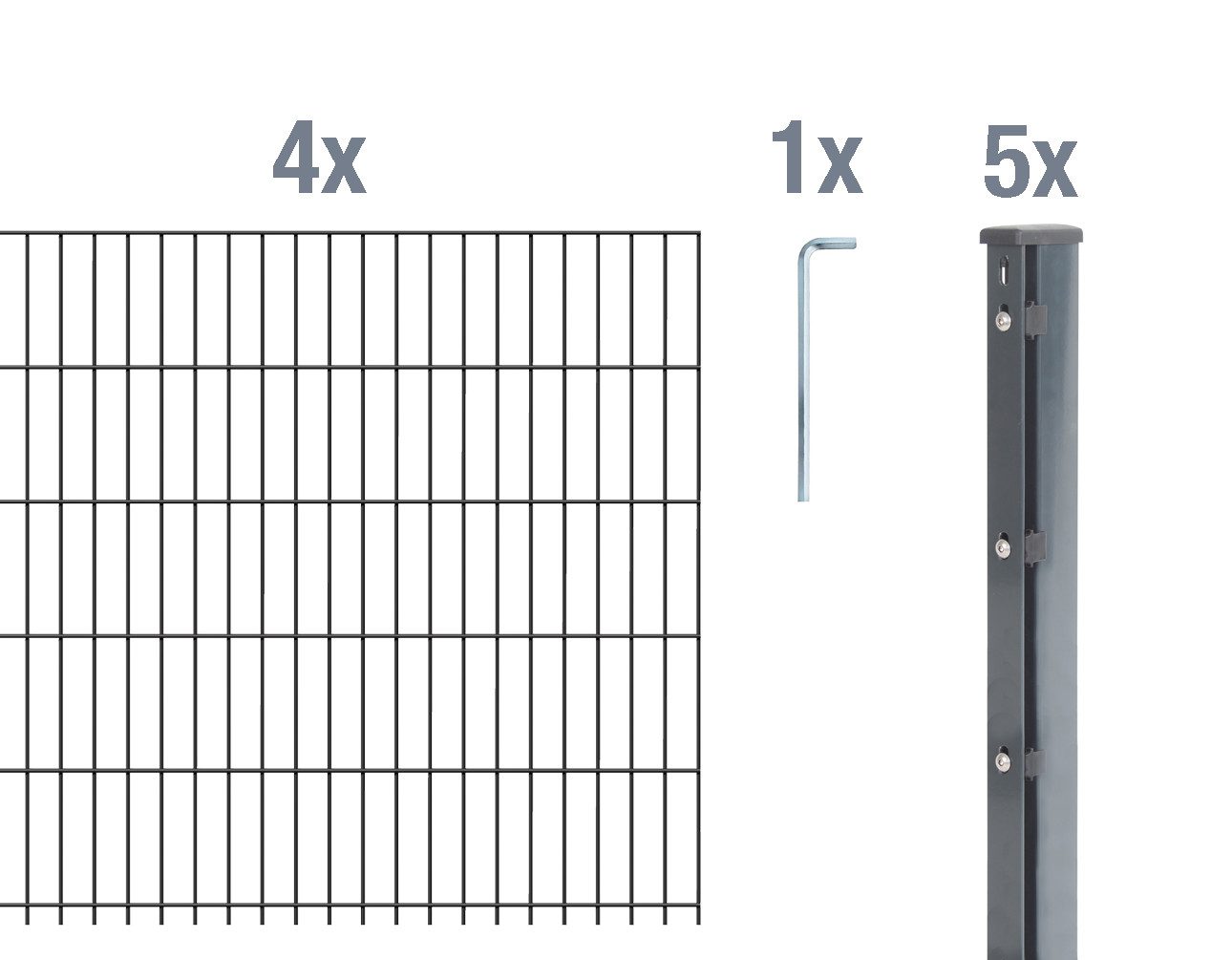 Alberts Einstabmattenzaun DSM-Set,Flach.8/6/8anth2500x1030/10, Doppelstabmattenzaun anthrazit 8-6-8, 2,5 m Matte, Höhe 63-243 cm, Län