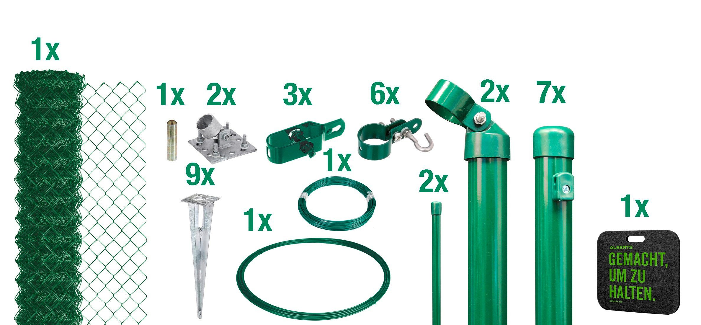 | Lieferumfang | 1 x Bindedraht 1 x Einschlagwerkzeug 1 x Maschendrahtgeflecht 1 x Spanndraht 2 x Geflechtspannstab 2 x Strebe 2 x Strebenplatte Drahtspanner Einschlag-Bodenhülse Gratis dazu: Kniekissen »Gemacht, um zu halten«. Schont und schützt die Knie bei Gartenarbeit. Schelle für Geflechtspannstäbe Zaunpfosten |