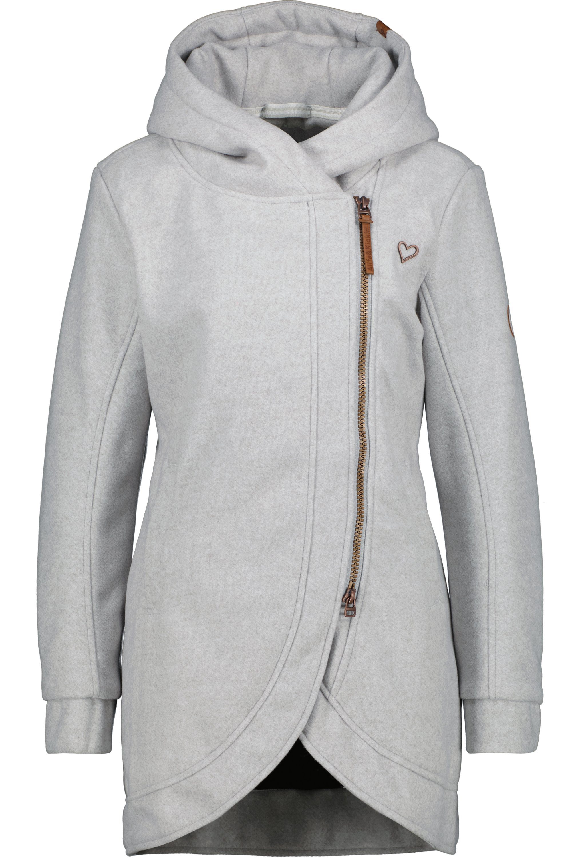 Ist und bleibt ein zeitloser Klassiker - die warm gefütterte Winterjacke CarlottaAK J aus der neuen Herbst - Winter -Kollektion von Alife and Kickin. Der asymmetrische durchgehende Reißverschluss und die effektvolle Wickeloptik mit abgerundetem Rückenteil zeugen von stilsicherem Design und sind die Highlights der langen Jacke für Damen. Modische Details wie die opulente wärmende Wickelkapuze und die farblich abgehobenen Labelpatches perfektionieren den cleanen Look des Mantels. Die leicht taillierte Passform setzt zudem die feminine Silhouette perfekt in Szene. Gefertigt ist die Damenwinterjacke aus einer strapazierfähigen Materialmischung in Wolloptik, innen sorgt das kuschelige Innenfutter aus Fleece für ein wärmendes und angenehmes Tragegefühl. Zwei seitliche Eingriffstaschen, die mit einem Druckknopf geschlossen werden können, geben der Winterjacke für Damen einen zusätzlichen funktionellen Charakter. Kombinierfähig mit allem was Dir lieb und teuer ist, avanciert der zeitlose Damenmantel CarlottaAK J von Alife and Kickin zum absoluten Lieblingsstück in Deinem gut sortierten Kleiderschrank.