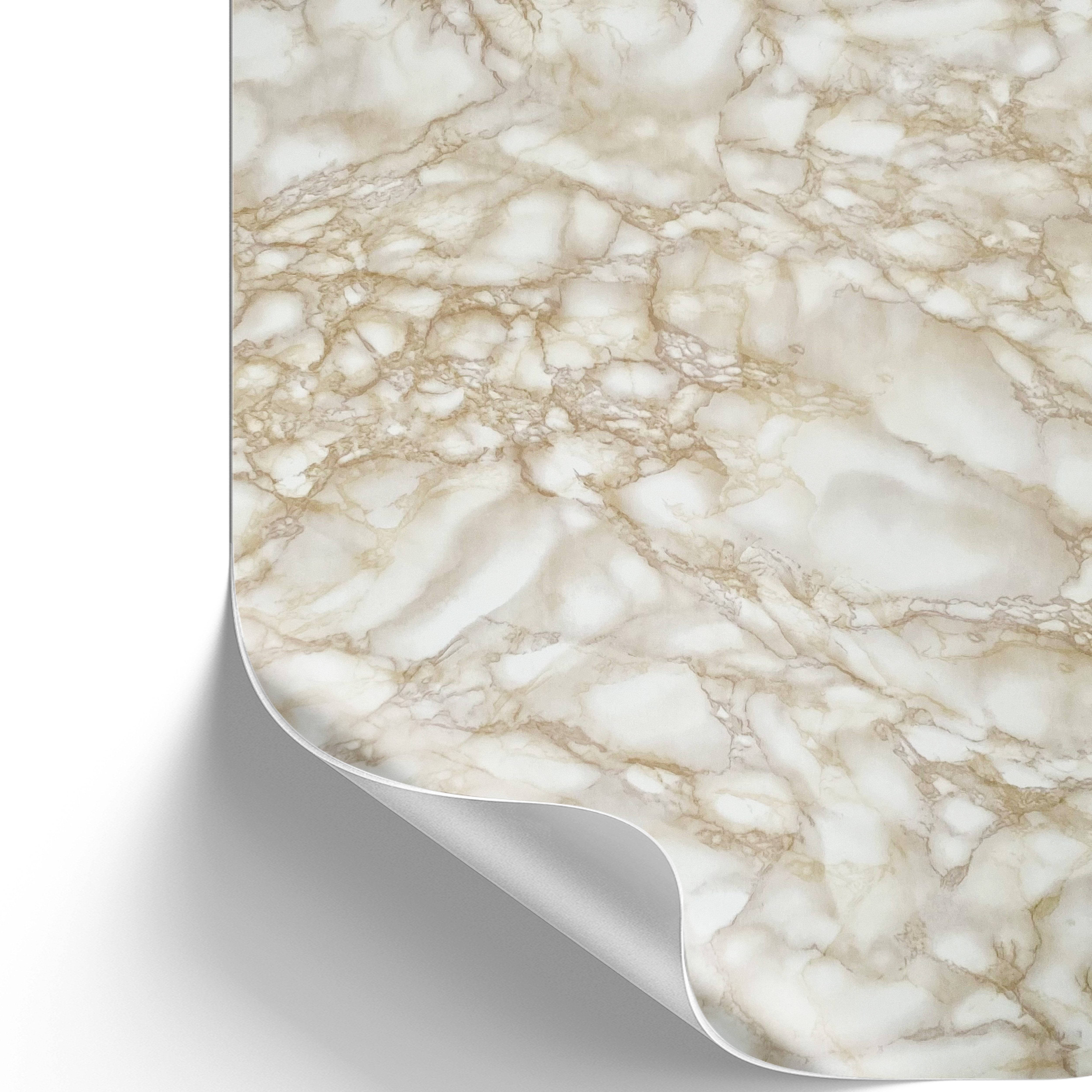 Edles Design: Die selbstklebende Möbelfolie in Marmoroptik sorgt für eine luxuriöse, moderne Atmosphäre und wertet Möbel sowie Küchenfronten stilvoll auf.
